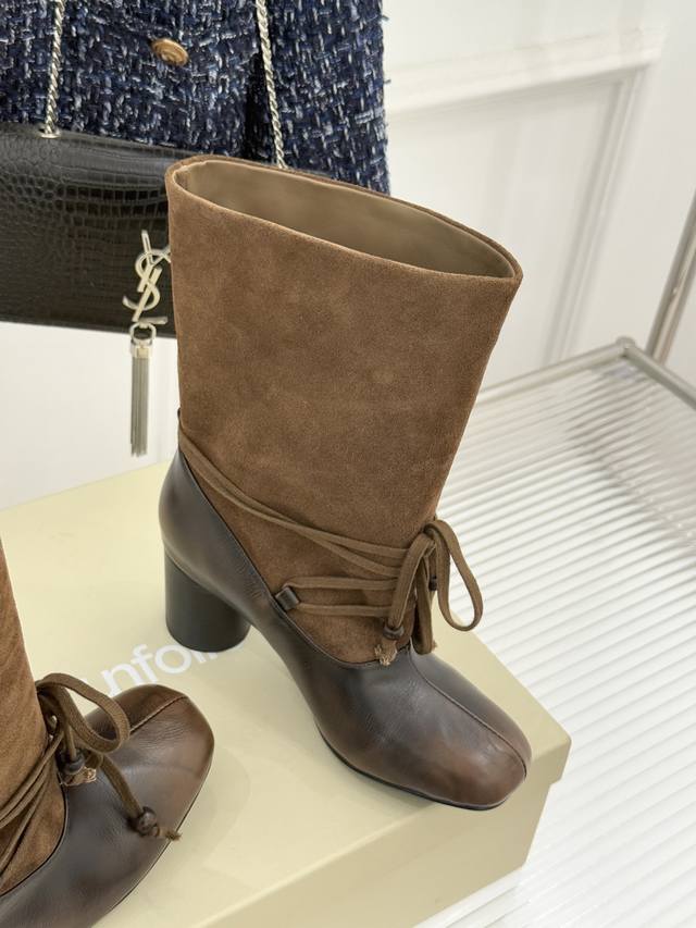厂价 DDD Unfolio25Wf新品复古绑带粗跟短靴 DDD 当地中海的浪漫风遇见复古美学 DDD 这款短靴便有了恰到好处的时髦张力。 DDD 不刻意张扬 却能凭细节成为造型焦点 DDD 让日常穿搭自带氛围感。 DDD 复古设计 藏着时光质感 DDD 绑带缠绕脚踝的经典元素 DDD 复刻了旧时光的慵懒与精致 DDD 可随腿围自由调节的系带设计 DDD 适配多种脚型 更悄悄修饰踝部线条 DDD 柔和的鞋型带着克制的美感 DDD 搭配沉稳粗跟 行走间既有复古韵味 DDD 又不失现代都市的利落姿态 DDD