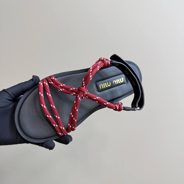 / 厂价p弹力绳 水钻300 Miu Miu 缪缪24S春夏新品 发布会巴黎时装周夹脚凉鞋 简直是夏天穿搭的时髦巅峰 鞋面采用进口牛皮 弹力绳 水钻 内里踮脚采用进