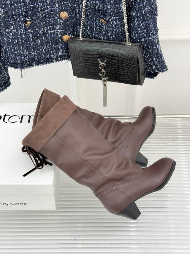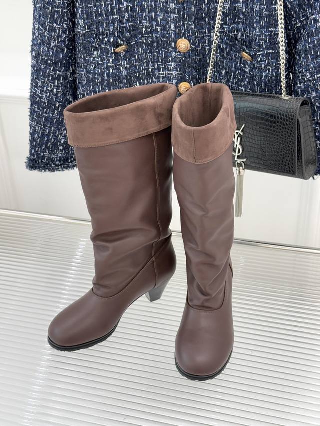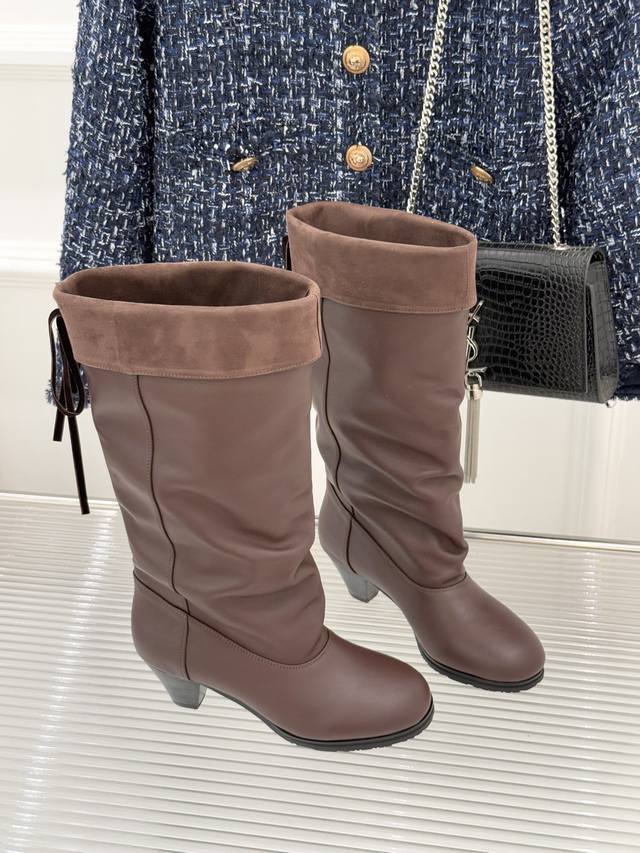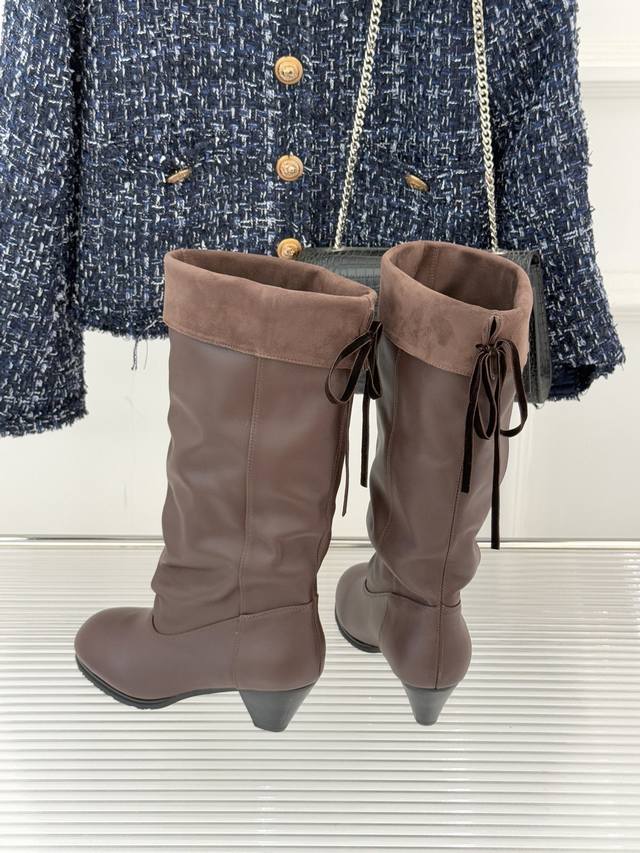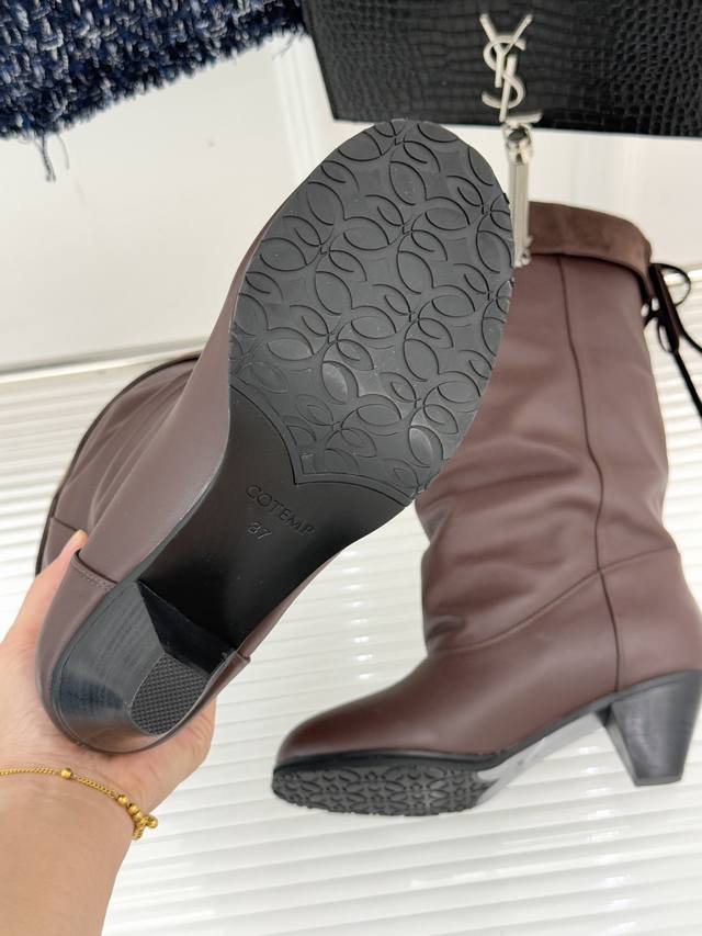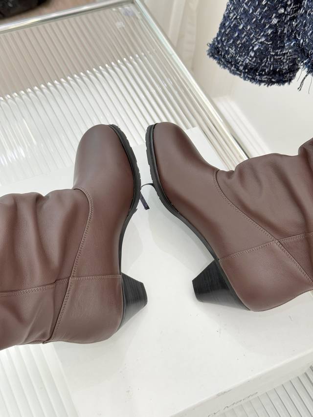 厂价P短靴 长靴 Cotemp70Wf新品圆头猫跟堆靴系列 当圆头的温柔撞上堆靴的慵懒 这一系列鞋履便成了秋冬的“氛围感神器” 它不刻意追求锐利 却用恰到好处的松弛感 让每一步都自带随性优雅的气场。 圆润鞋头弱化了鞋履的生硬感 包容各种脚型的同时 更添几分软萌气质 走路时脚尖无束缚 舒适感拉满 自然堆褶的靴口是设计亮点 不紧绷、不贴腿 轻轻垂落在小腿处 既能藏住腿型小缺点 又透着不经意的法式慵懒 搭配裤装露一截靴边 或配裙子露出纤细脚踝 都格外显灵动。 适中高度的猫跟是“隐形增高神器” 也比平底靴更显身材