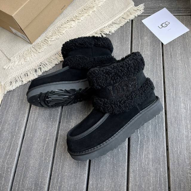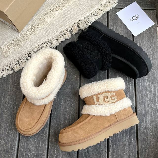 厂价P: Ugg 刺绣Logo翻毛雪地靴火爆来袭 牛皮搭配皮毛一体设计 秋冬穿搭必备单品 材质牛皮,内里真羊毛 码数:35-41