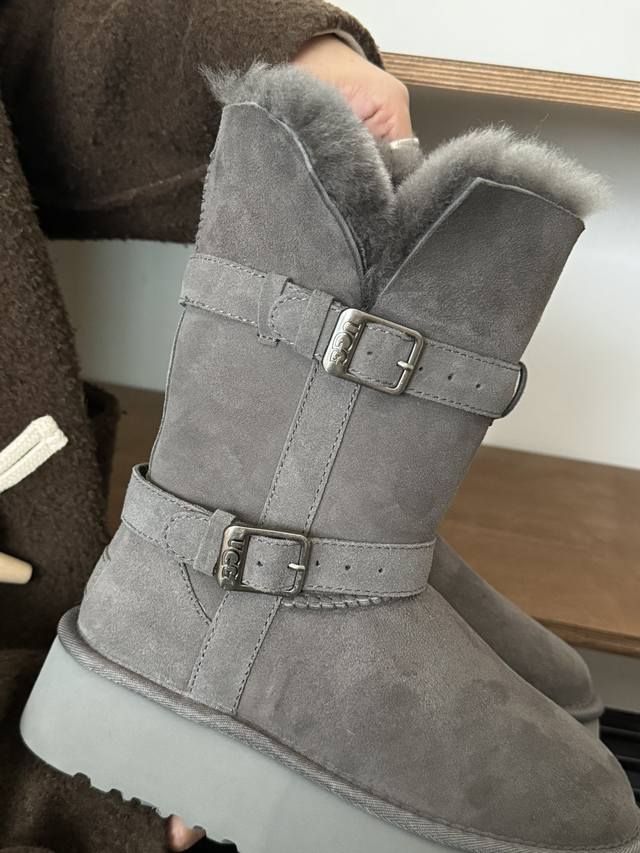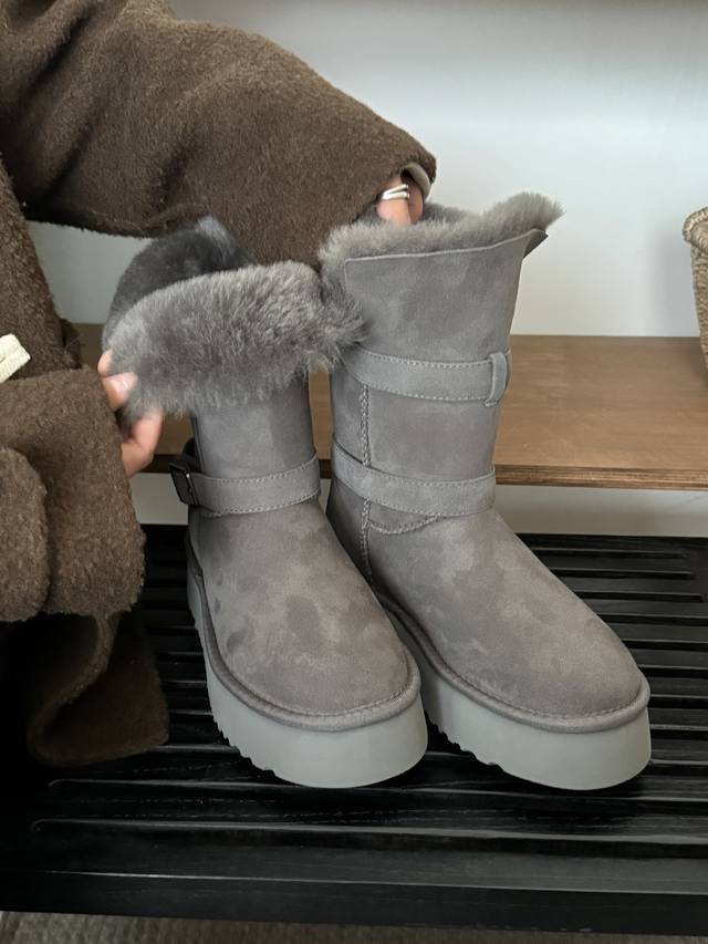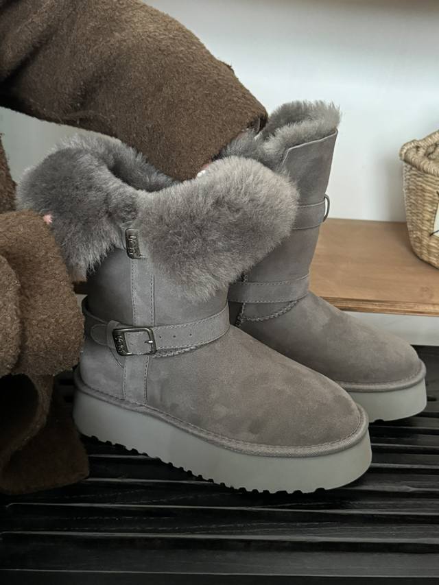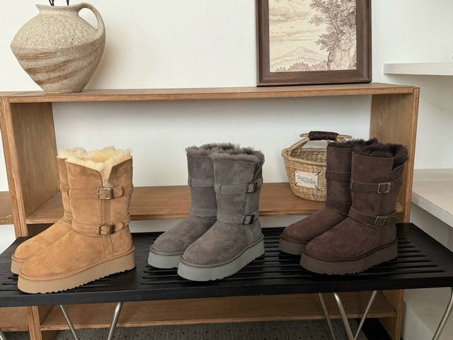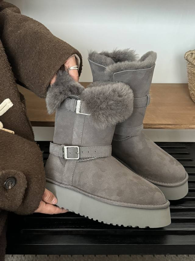 / 厚底中骑士 秒变大长腿 两穿可翻毛 奶里奶气 毛茸茸慵懒风+皮带厚底设计 秋冬色系搭 栗色 巧克力色 灰色 配时尚元素爆棚 鞋面:羊皮毛一体 尺码:35-40
