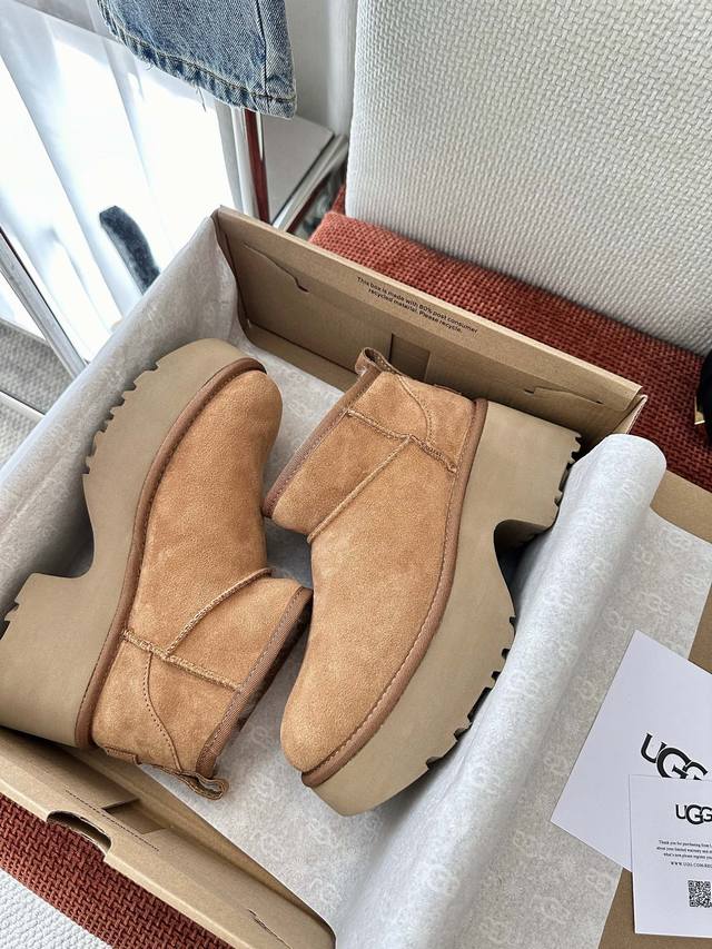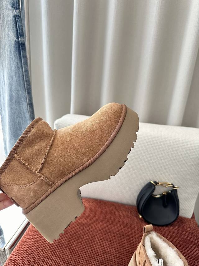 厚底人鱼超短靴|原版购入代购级别 面料:100%翻毛皮革 衬里:羊皮毛 再生聚酯纤维制成的纺织滚边 7Cm轻盈Eva外底 Size:35-40