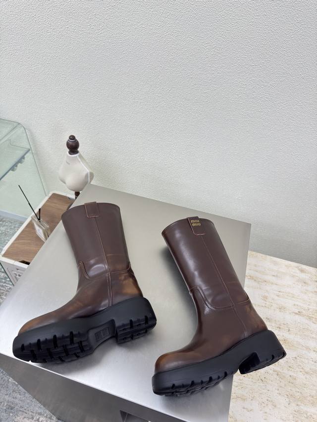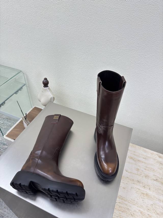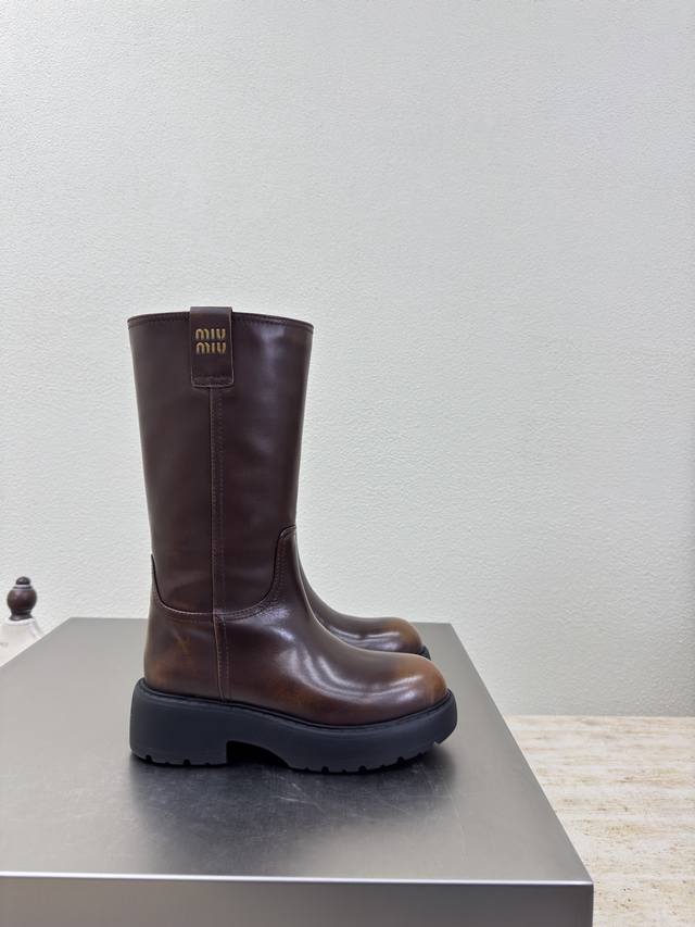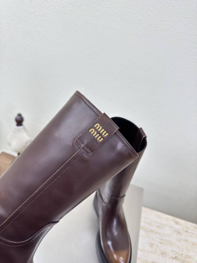 / 厚底高靴 Miu'miu 乐福鞋 擦色棕小牛皮立体金属Logo 厚底 设计 系列 Miu'miu 经典舒适 制作 原版一致 成型大底 高版本 面料 头层牛皮 内