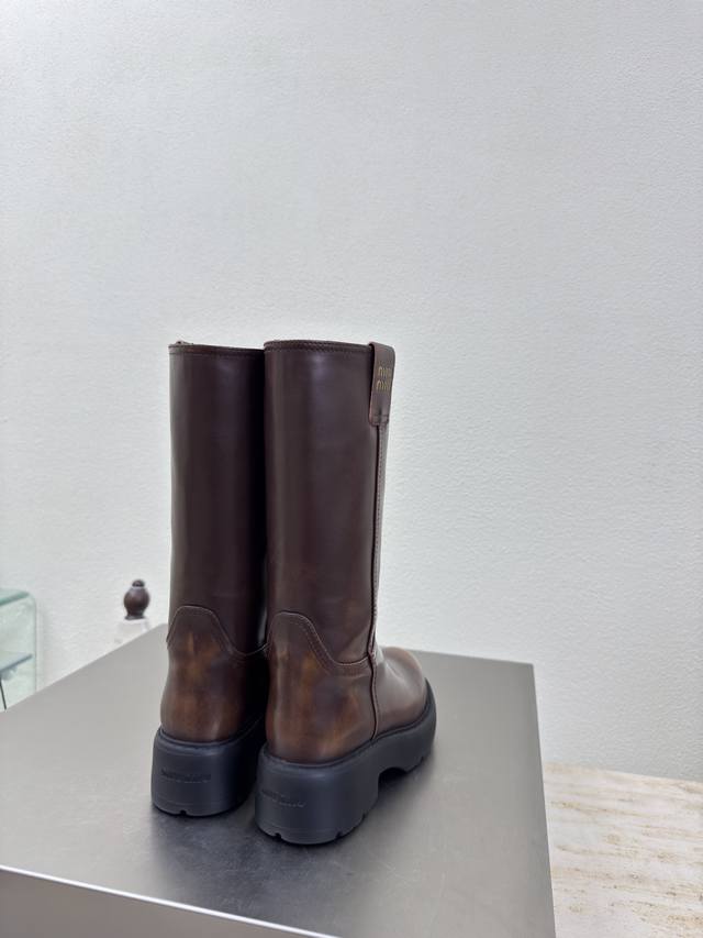 厚底高靴 Miu'miu 乐福鞋 擦色棕小牛皮立体金属Logo 厚底 设计 系列 Miu'miu 经典舒适 制作 原版一致 成型大底 高版本 面料 头层牛皮 内