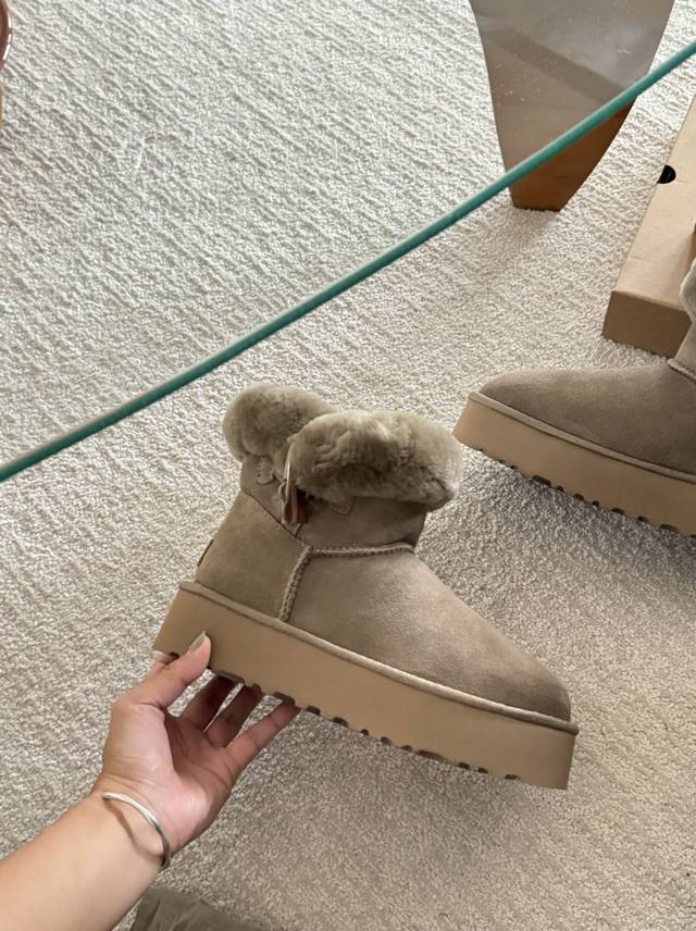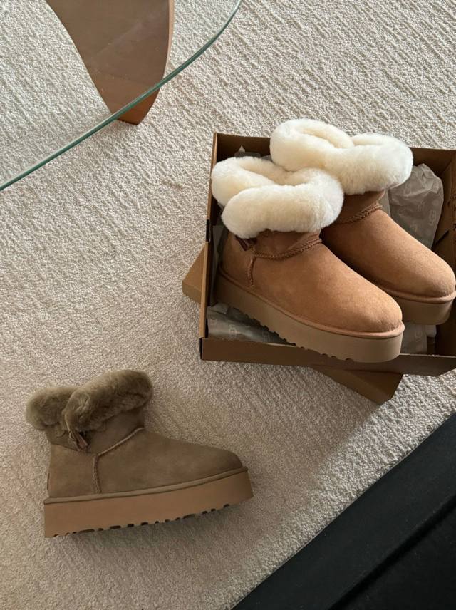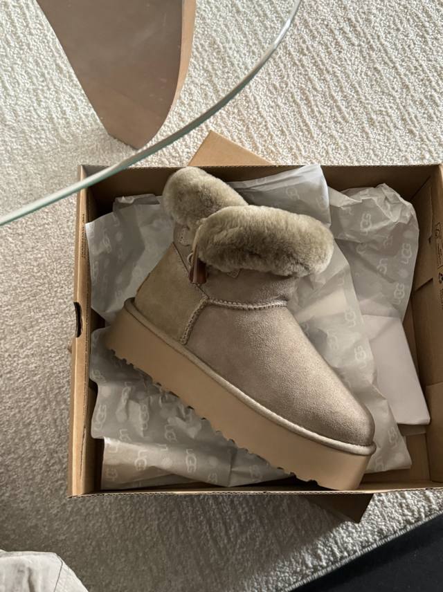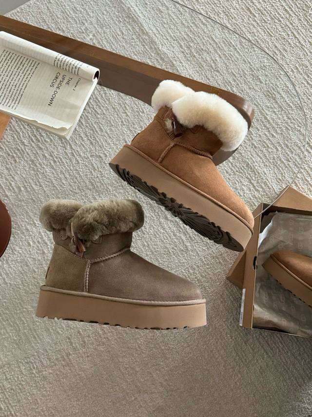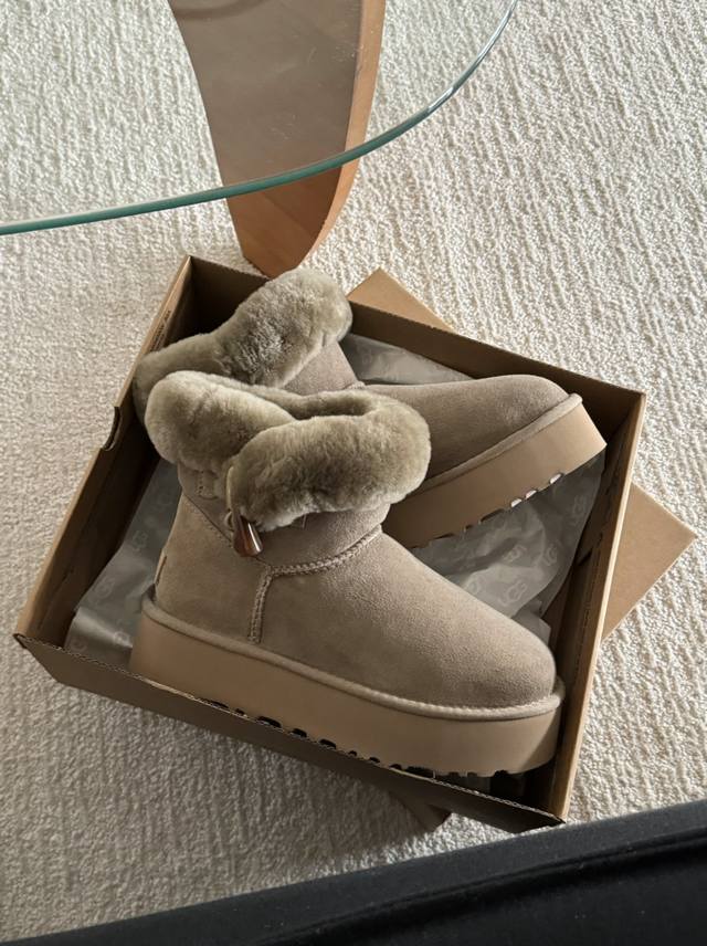 厚底 休闲牛角扣皮毛一体短靴~ 采用高品质A级隆丰皮毛一体 鞋口外翻毛口设计牛角扣搭配 Size:35-40