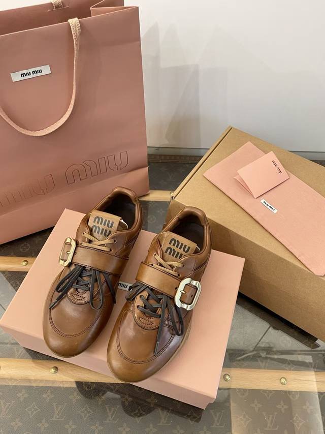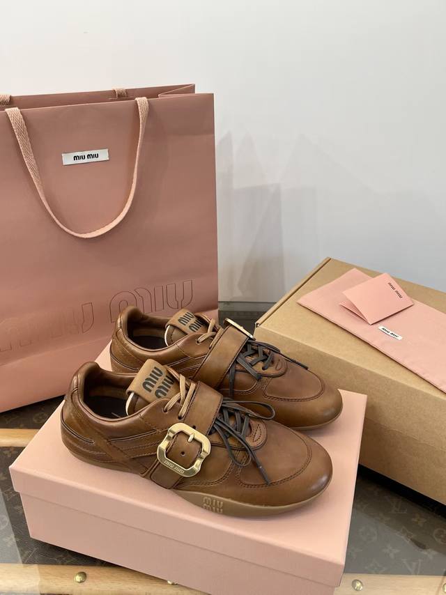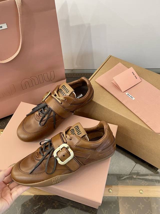 FFF 原版复刻 DDD 缪缪6秋冬金扣复古做旧牛皮革运动德训鞋 DDD 莞大厂顶级代购品质 DDD 代购品质~出入无压力 DDD 焦糖色做旧小牛皮+金属扣点缀+双鞋带~超有质感~又甜又酷~复古又帅气~ DDD 独一无二 风格 DDD 上脚巨舒适 巨好穿~无敌百搭~光脚穿或搭配中筒袜 配长裙子 裤子 都巨洋气~巨高级~少女风松弛感满满 DDD 懂货的自然懂~代购品质绝对完全不一样 DDD 随鞋全部: DDD 1面料进口顶级小牛面料+蛇皮压花 DDD 2内里进口羊皮 DDD 3鞋底Tpu耐磨防滑 DDD :