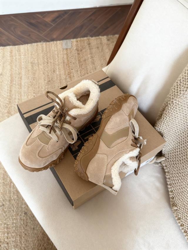 又一款惊艳到你的复古德训鞋,彩色与净色的完美搭配,多色双鞋带美的恰到好处,是出街的完美搭子,澳洲小卷羊毛里,舒适松软的大底, 颜色 栗色,沙色 巧色 码数 5-