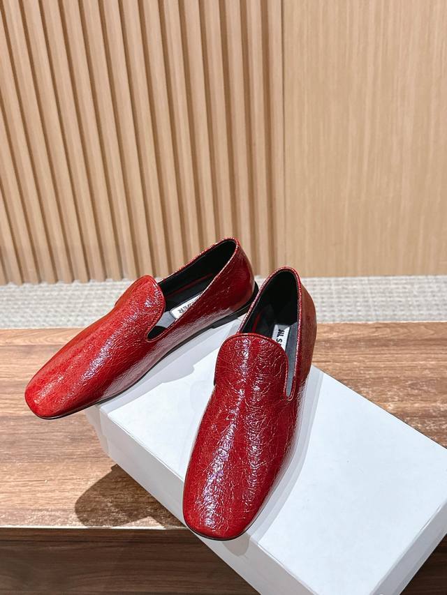 吉尔桑达新款乐福鞋 方头一脚蹬平底单鞋 DDD 典型的乐福鞋鞋型,属于一脚蹬,方便穿脱。鞋头为方头设计,这种鞋头风格复古又大气,能够修饰脚型,同时给脚趾提供相对宽松的空间,不会像尖头鞋那样对脚趾有过多挤压,穿着舒适度在视觉和实际体验上都有保障。 DDD 鞋面:马毛 羊皮 DDD 内里垫脚:羊皮 DDD 鞋底:意大利注塑真皮大底 DDD 码数:35-39 40.41定做不退换 DDD