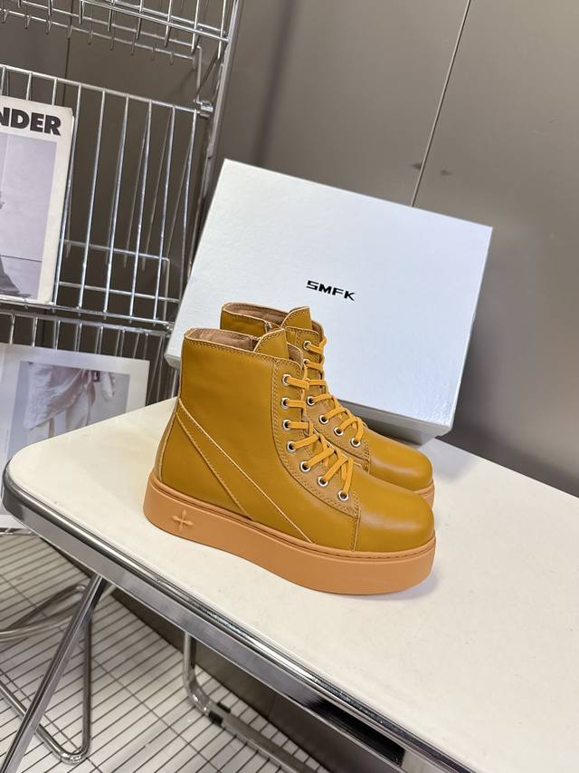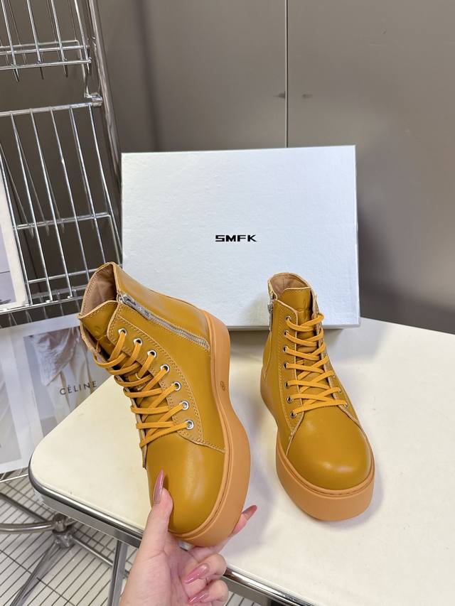 / 国潮品牌Smfk秋冬最新款厚底 休闲鞋 马丁靴 超多明星时尚博主种草 超火国内品牌 简约的设计 十字架Logo点缀 高级感满满 一眼心动 质感拉满 妥妥的增高神