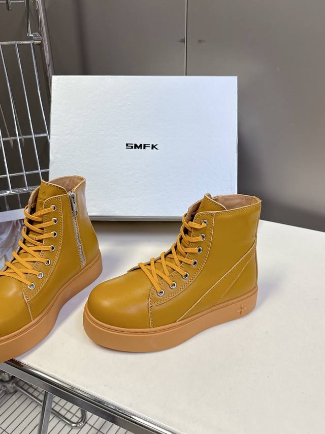 国潮品牌Smfk秋冬最新款厚底 休闲鞋 马丁靴 超多明星时尚博主种草 超火国内品牌 简约的设计 十字架Logo点缀 高级感满满 一眼心动 质感拉满 妥妥的增高神