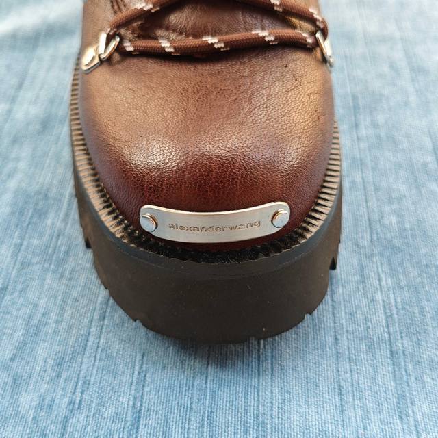 大王新款Alexander Wang 大王同款乐福鞋 复古 系带 短靴 马丁靴 金属鞋带孔搭配标志性的品牌徽标,厚底设计轻松拥有大长腿~秋冬轻松驾驭,通勤休闲时