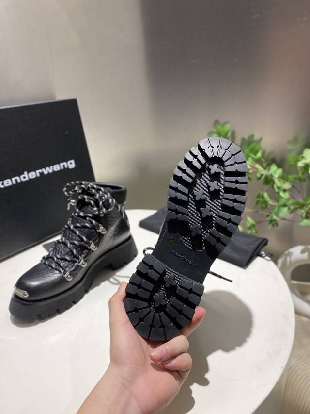 大王 新款!高品质Alexande* Wang原版1:1的材料,亚历山大王厚底**鞋,穿上秒变大长腿,这款经典马丁靴加上最新的创意批由进口小牛皮压纹工艺制成,采用运动休闲设计。 DDD 顶级品质!Alexander Wang亚历山大王 秋冬女士新款金属Logo字母金属扣!!!最流行的元素 .女王的绝佳搭配!简约又俏皮时尚休闲马丁靴。 DDD 鞋面:进口压纹牛皮 黑色,棕色, DDD 内里:进口羊皮 DDD 垫脚:进口羊皮 DDD 跟高:4.5Cm. DDD 原版开模Logo牛筋大底! DDD 码数:35