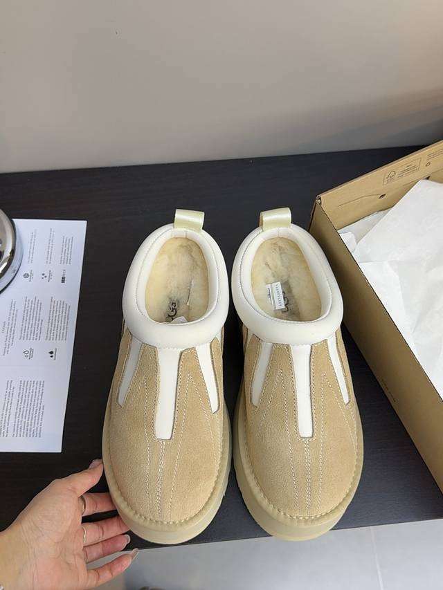 太阳花塔茨特 DDD 一脚蹬厚底雪地靴女2025冬季新款加绒加厚皮毛一体保暖棉鞋 DDD 颜色:栗色、芥菜籽色 DDD 尺码:35-40 DDD