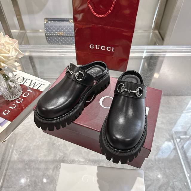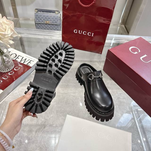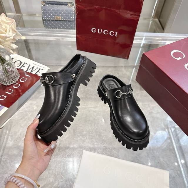/ 女性穆勒鞋配马衔扣 Horsebit向该品牌的马术历史致敬,多年来它已成为一个既具有历史意义又具现代感的象征。这里,它定义了这款黑色牛皮制作的女性骡子鞋。 黑色