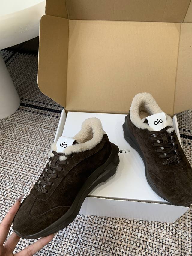女款 Alo 秋冬新款 厚底休闲 运动跑步瑜伽鞋 今年超火的品牌 好多明星网红种草 上脚超级百搭 而且超级舒适 是厚底款但是上脚一点都不沉非常轻便 套上袜套搭配