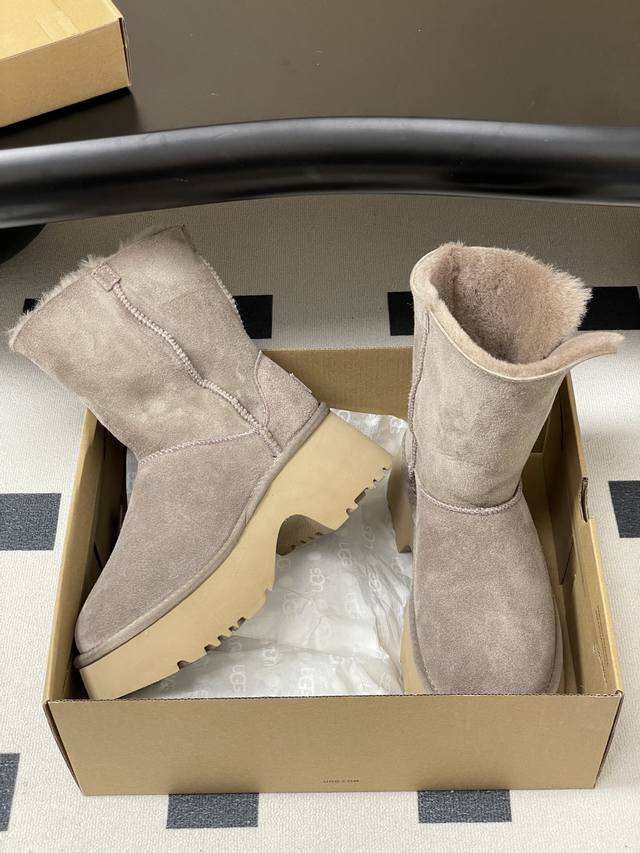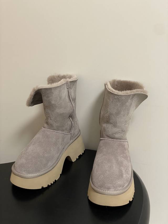 宋雨琦同款Ugg厚底雪地靴 羊毛短靴 超级好穿!一款鞋子三个穿法! Ugg |慵懒爵士风格真的太爱啦! #Ugg全新上市的埃斯米系列高筒: 7Cm的坡跟厚底 轻
