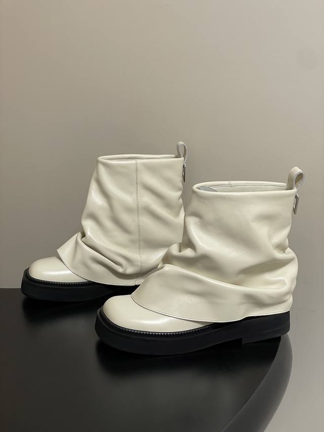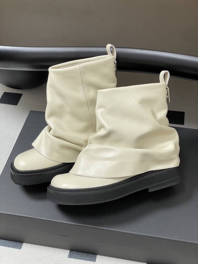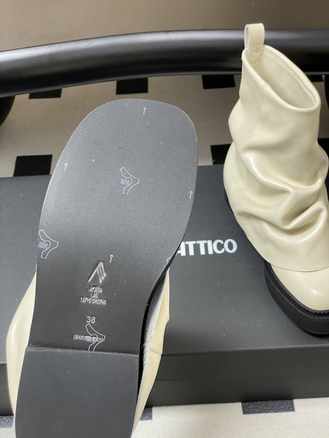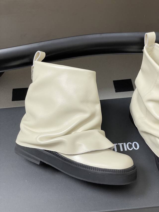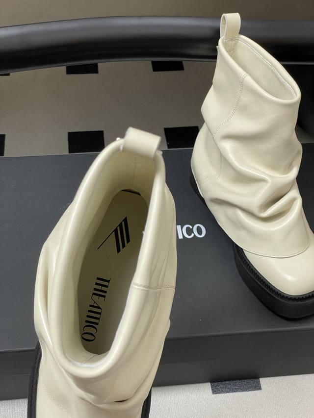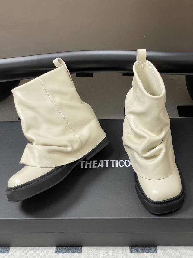 小众潮牌 The Attico 2025Fw秋冬新品时髦厚底短靴爆火网红短筒堆堆靴一脚蹬短靴 DDD 悠然呈现全新标志性鞋履系列 Robin DDD 甄选皮革融合街头灵感,匠心工艺跃升精致日常,个性褶裥与金属缀饰特立独行,多样款式描绘都市女性多元肖像,率性游走自我主场! DDD 超高品味单品 搭配一切衣服都好看的一双靴 太绝了 DDD 真的时尚感和质感都很在线啊,我愿称之为辣妹必备单品,堆堆靴超显腿长腿细,超酷的靴型穿上走路带风气场两米八!! DDD 视觉盛宴 性感自由气质 简约气质款式! DDD 鞋面: