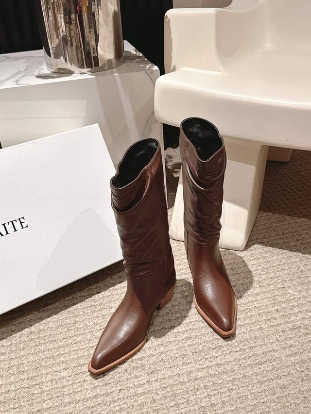 / 小众潮牌Khaite秋冬最新款复古尖头时装长靴 超多明星时尚博主种草 把“酷飒”焊在腿上 利落方跟+尖头 拿捏利落气场 都市职场女性风格自带松弛感 穿上直接解锁
