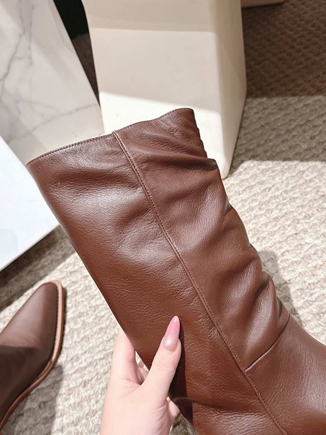 小众潮牌Khaite秋冬最新款复古尖头时装长靴 超多明星时尚博主种草 把“酷飒”焊在腿上 利落方跟+尖头 拿捏利落气场 都市职场女性风格自带松弛感 穿上直接解锁