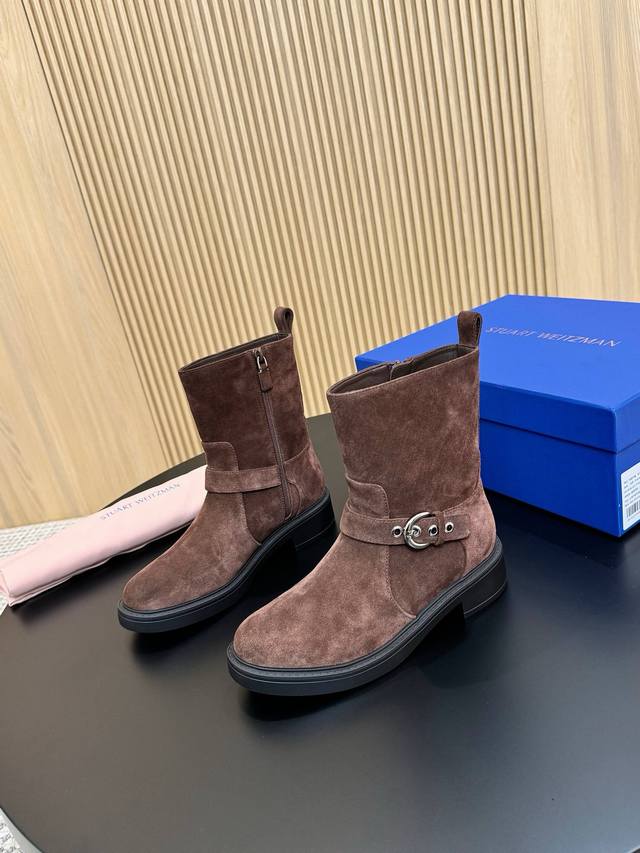 小牛皮530 牛反绒 代购级别 25Sw专柜同步主推款皮带扣侧拉链骑士靴 原版开模1:1匠心打造,经典楦型,还原度极高,侧面拉链设计,方便穿脱 这款随性前卫的及