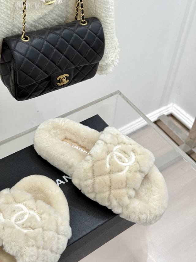 / 小香双C菱格毛拖 DDD 人手必入的秋冬跑量单品 DDD 经典的版型设计+菱格电绣Logo DDD 松紧 贴合脚部 更加舒适不挑脚型! DDD 上脚特别好看哦,