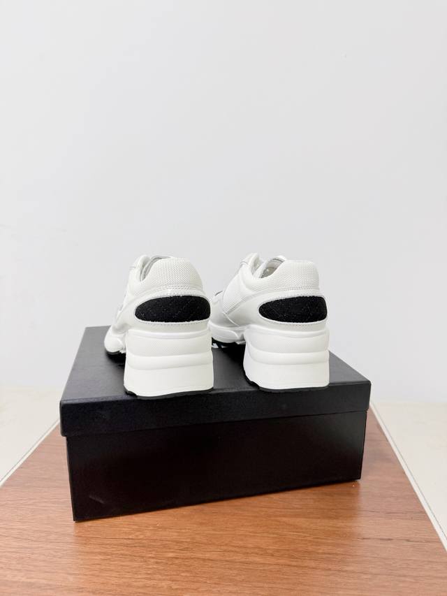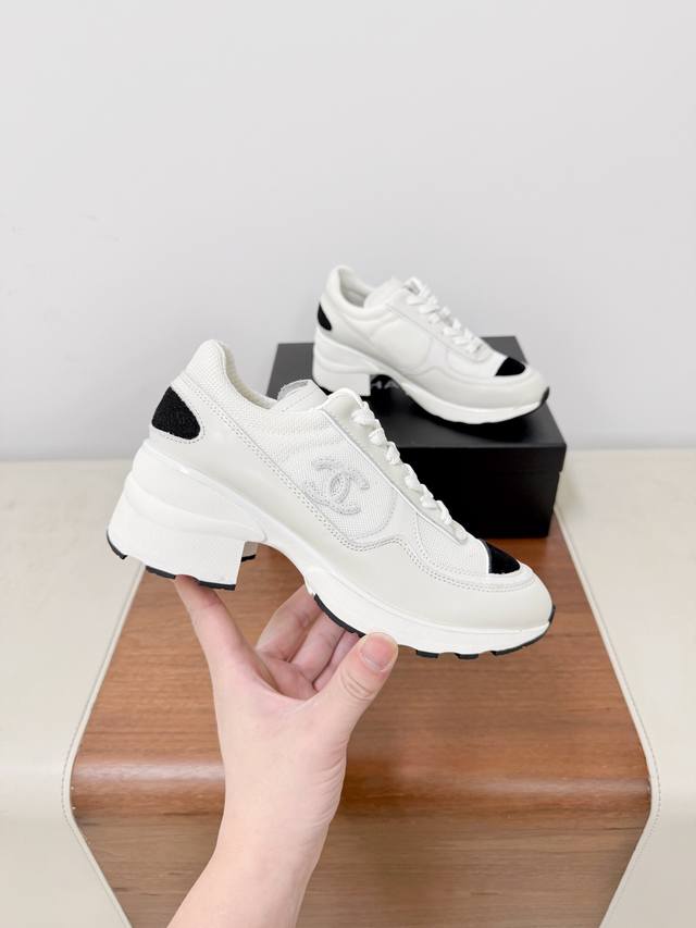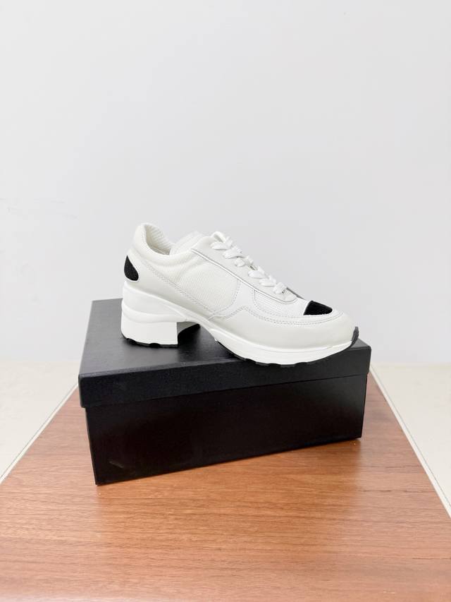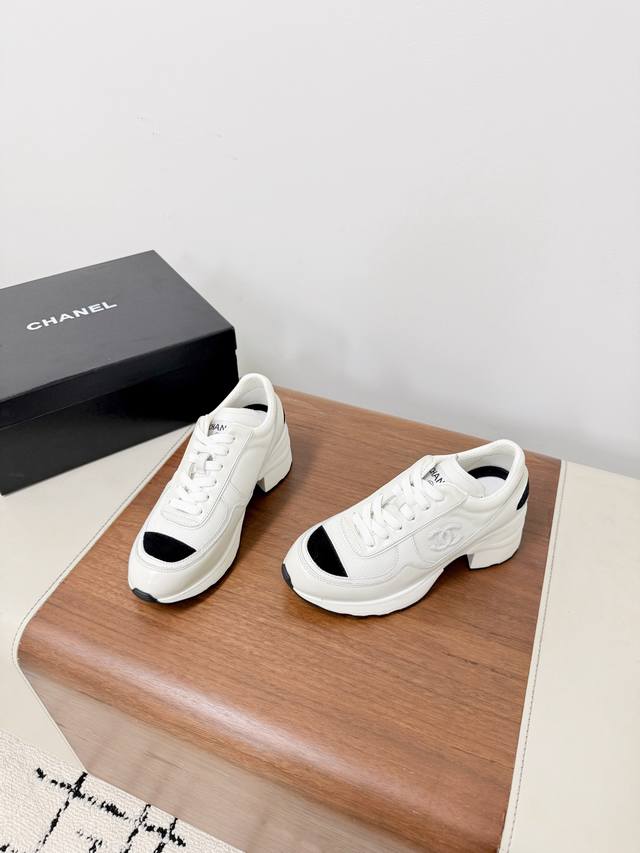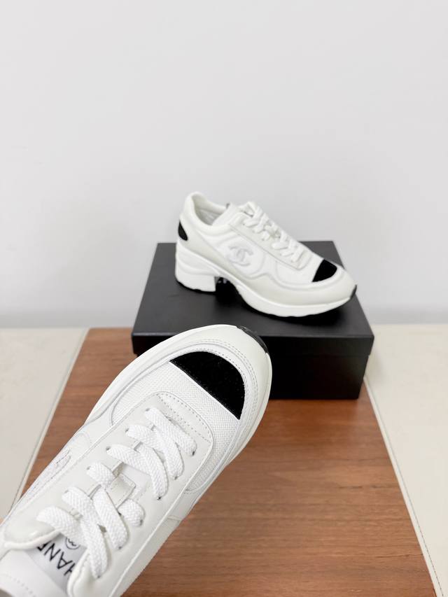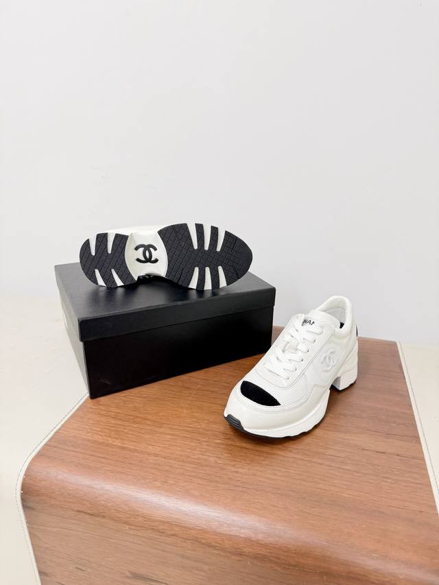 小香新款粗跟休闲运动鞋 潮人士必入款 经典双C标识高吸调睛,黑白配永过不时! 皮革+网拼面接,质感满拉还透气 老爹廓鞋形,悄悄增高还显腿细 从通勤Ol到街潮头妹