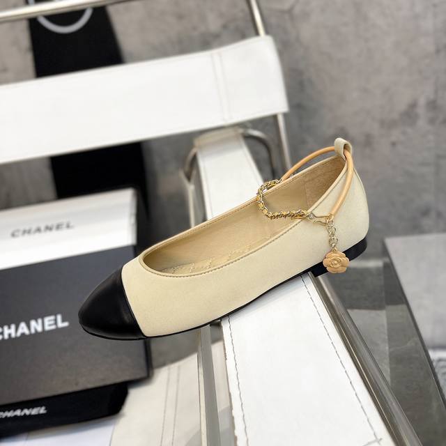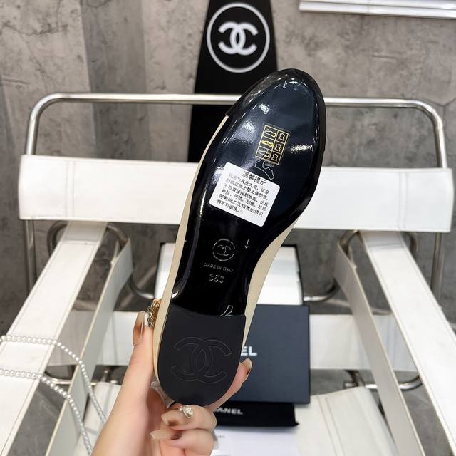 / 小香爆款春夏链条珍珠脚环玛丽珍芭蕾舞单鞋走秀款 原版一比一开模五金扣工能设计,穿皮条脚环装饰可自行装卸链条穿皮条工艺,小香双C和山茶花金属扣装饰点缀,超美芭蕾舞