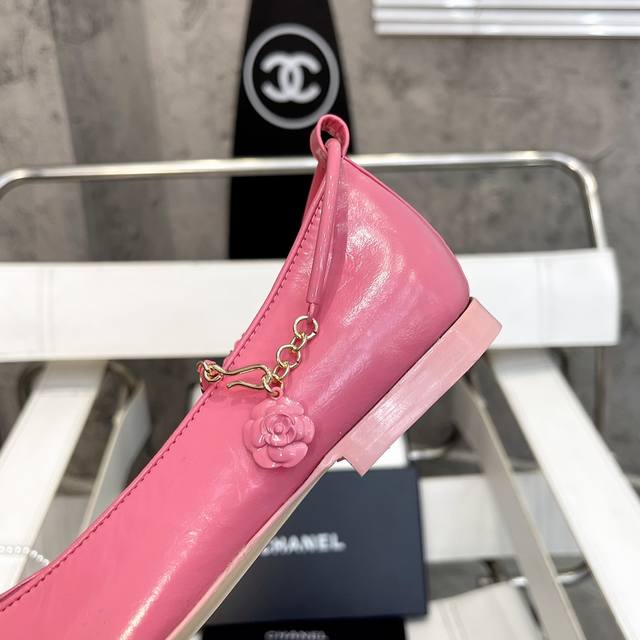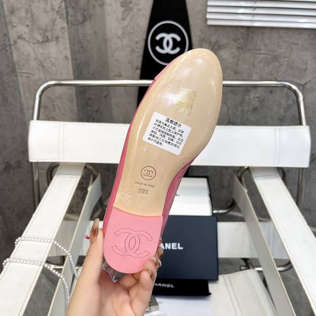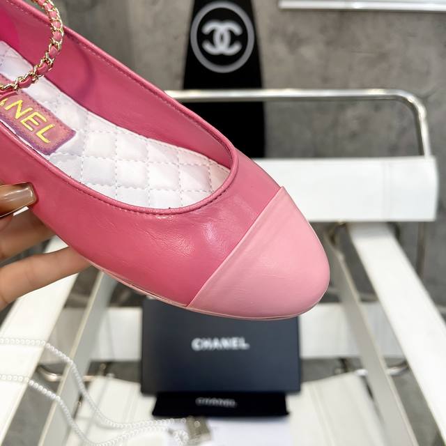 / 小香爆款春夏链条珍珠脚环玛丽珍芭蕾舞单鞋走秀款 原版一比一开模五金扣工能设计,穿皮条脚环装饰可自行装卸链条穿皮条工艺,小香双C和山茶花金属扣装饰点缀,超美芭蕾舞