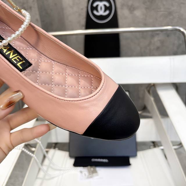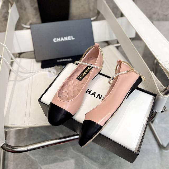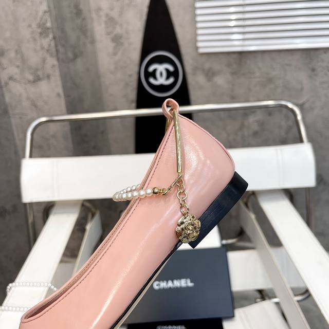 / 小香爆款春夏链条珍珠脚环玛丽珍芭蕾舞单鞋走秀款 原版一比一开模五金扣工能设计,穿皮条脚环装饰可自行装卸链条穿皮条工艺,小香双C和山茶花金属扣装饰点缀,超美芭蕾舞