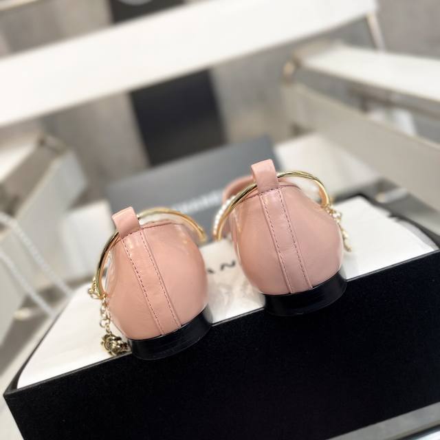 小香爆款春夏链条珍珠脚环玛丽珍芭蕾舞单鞋走秀款 原版一比一开模五金扣工能设计,穿皮条脚环装饰可自行装卸链条穿皮条工艺,小香双C和山茶花金属扣装饰点缀,超美芭蕾舞