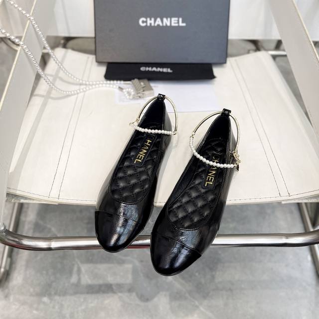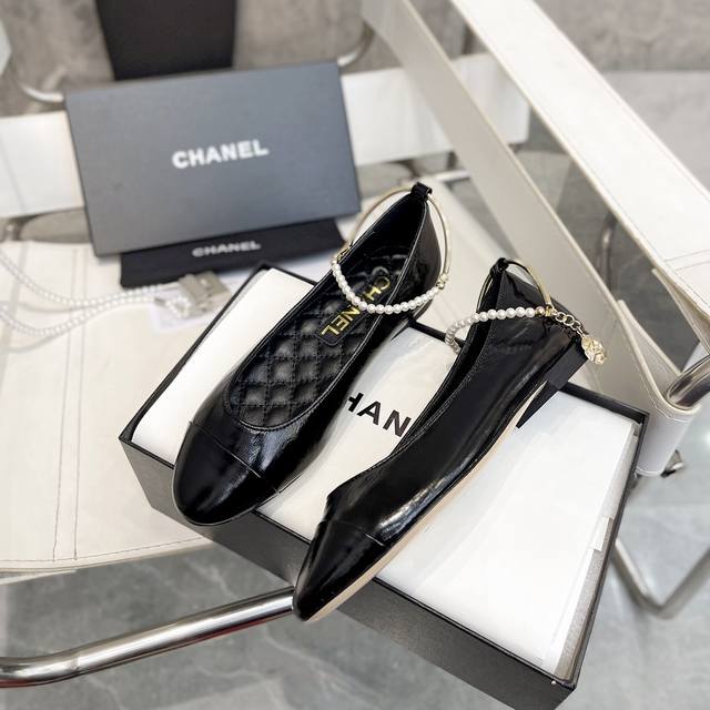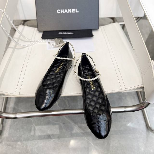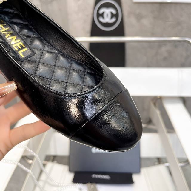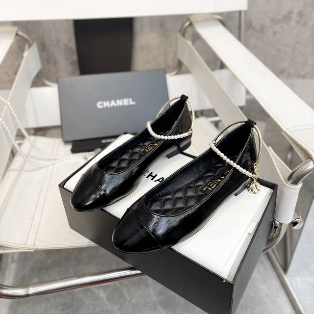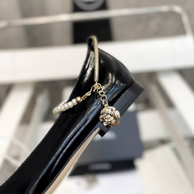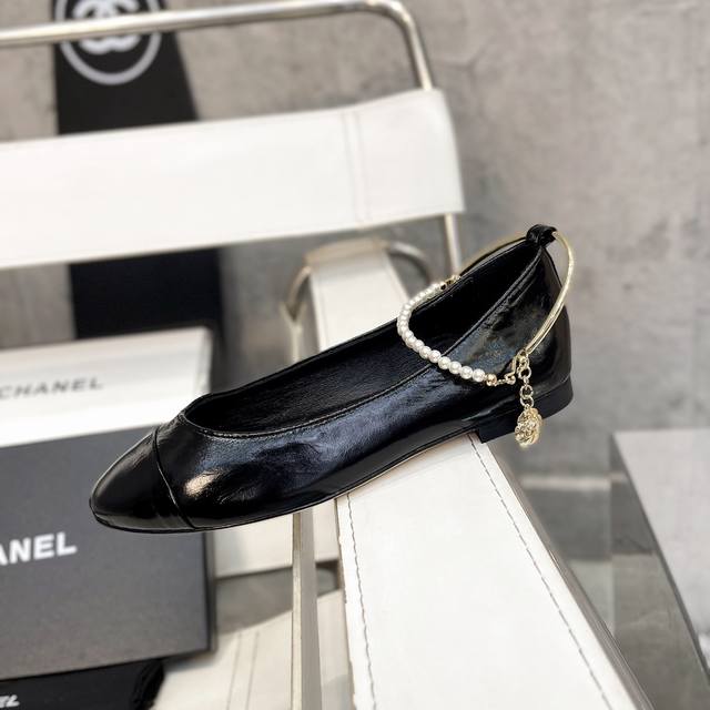 / 小香爆款春夏链条珍珠脚环玛丽珍芭蕾舞单鞋走秀款 原版一比一开模五金扣工能设计,穿皮条脚环装饰可自行装卸链条穿皮条工艺,小香双C和山茶花金属扣装饰点缀,超美芭蕾舞