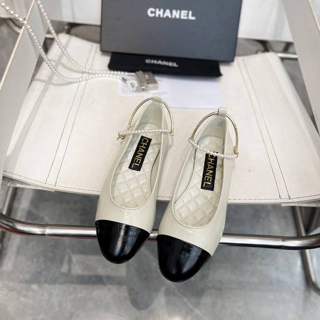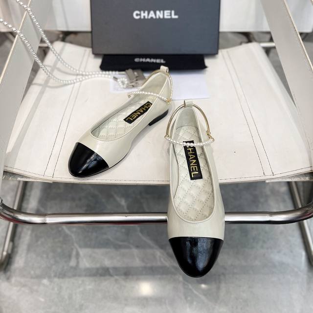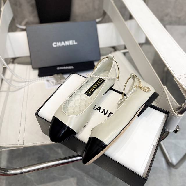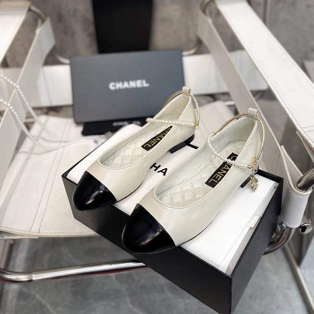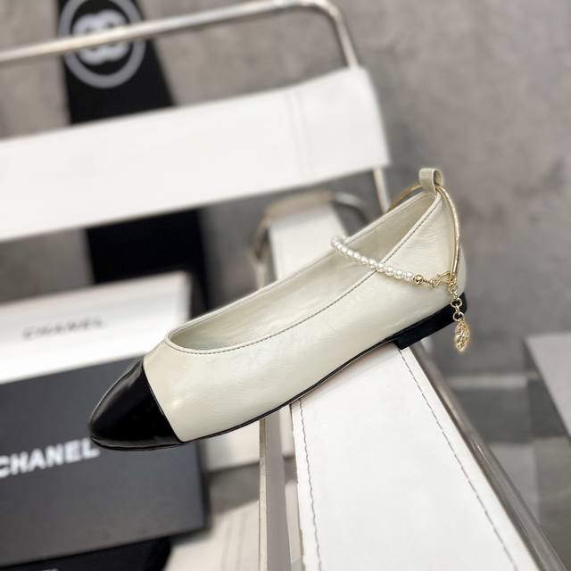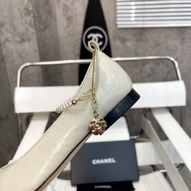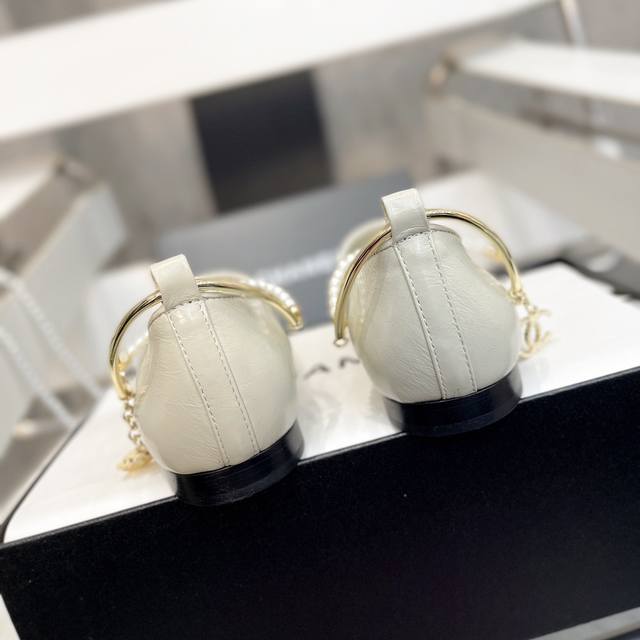 / 小香爆款春夏链条珍珠脚环玛丽珍芭蕾舞单鞋走秀款 原版一比一开模五金扣工能设计,穿皮条脚环装饰可自行装卸链条穿皮条工艺,小香双C和山茶花金属扣装饰点缀,超美芭蕾舞