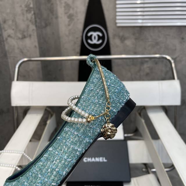 小香爆款春夏链条珍珠脚环玛丽珍芭蕾舞单鞋走秀款 原版一比一开模五金扣工能设计,穿皮条脚环装饰可自行装卸链条穿皮条工艺,小香双C和山茶花金属扣装饰点缀,超美芭蕾舞