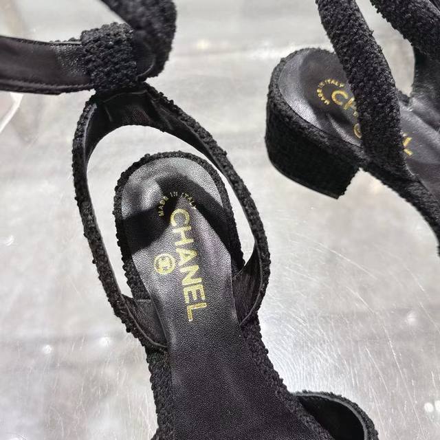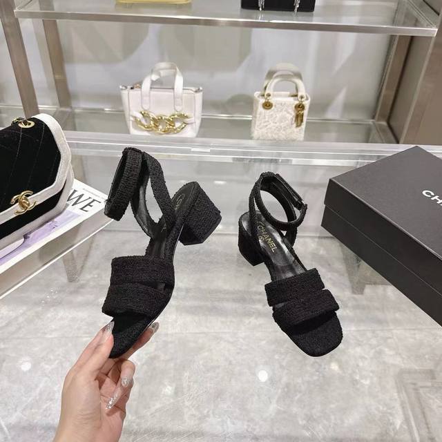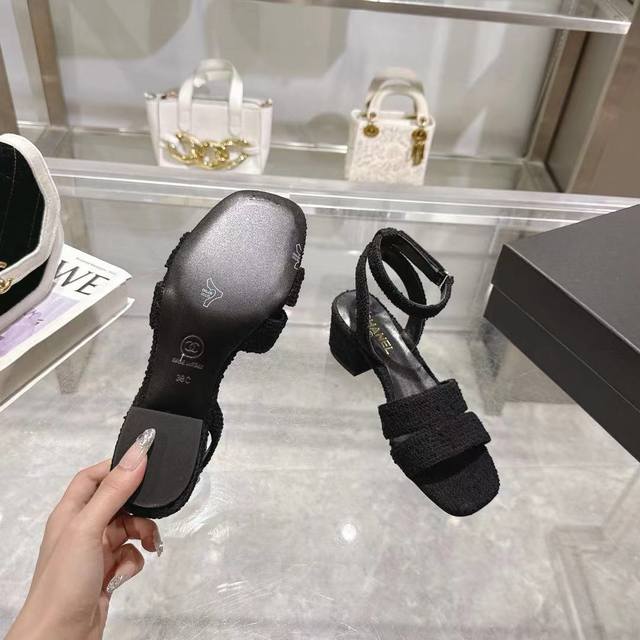 / 小香 春夏新品 专柜新款凉鞋电绣凌格永不褪去的经典元素 展现与众不同的穿搭风格美到无话可说 夏季必入款 鞋面:进口羊皮 针织面料 内里:混种羊皮 跟高:5Cm