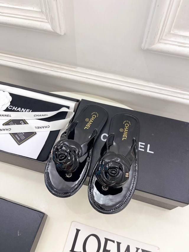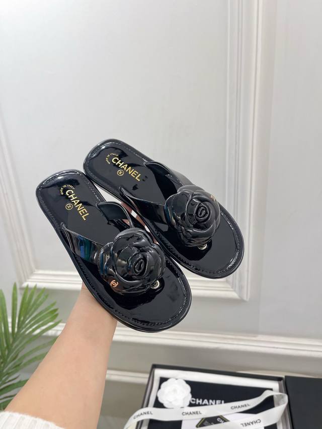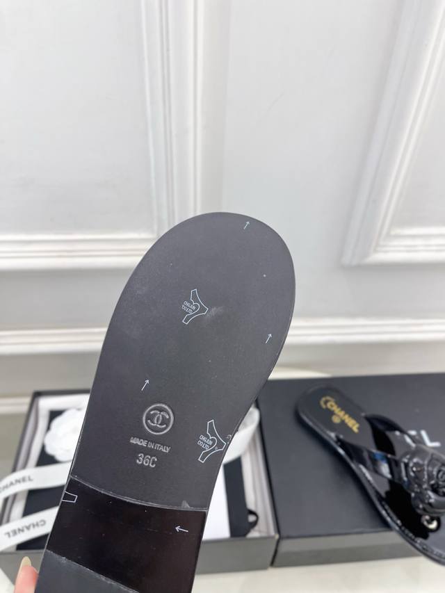 小香 25 DDD 2025早春新品 专柜经典走秀款 小香双C山茶花夹脚人字拖鞋 系列上新 DDD Bs时尚圈的绝绝子 搭配将演绎着细致 极简 永不褪去的经典元素 展现与众不同的穿搭风格美到无话可说 夏季必入款 DDD T DDD 鞋面:高定制原版牛漆皮 DDD 内里:进口丝绸羊皮里 DDD 大底:原版意大利真皮大底 DDD 跟高:平底 DDD 鞋码: 35-39 40.41定制不退换 DDD 出厂价pp: DDD