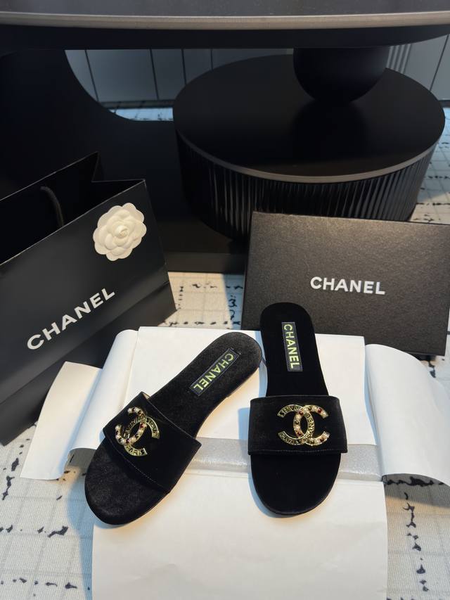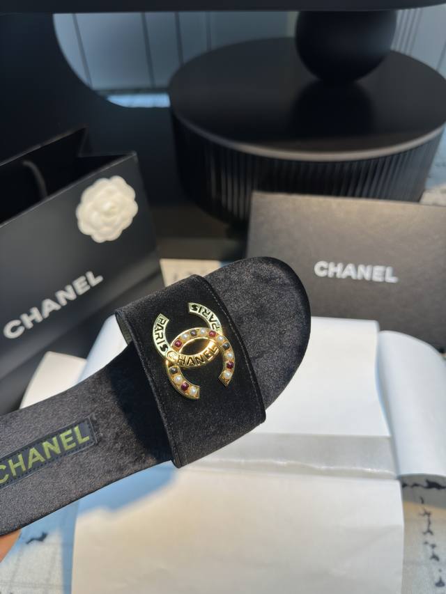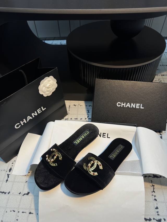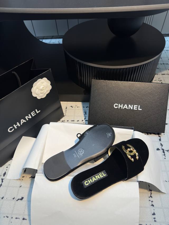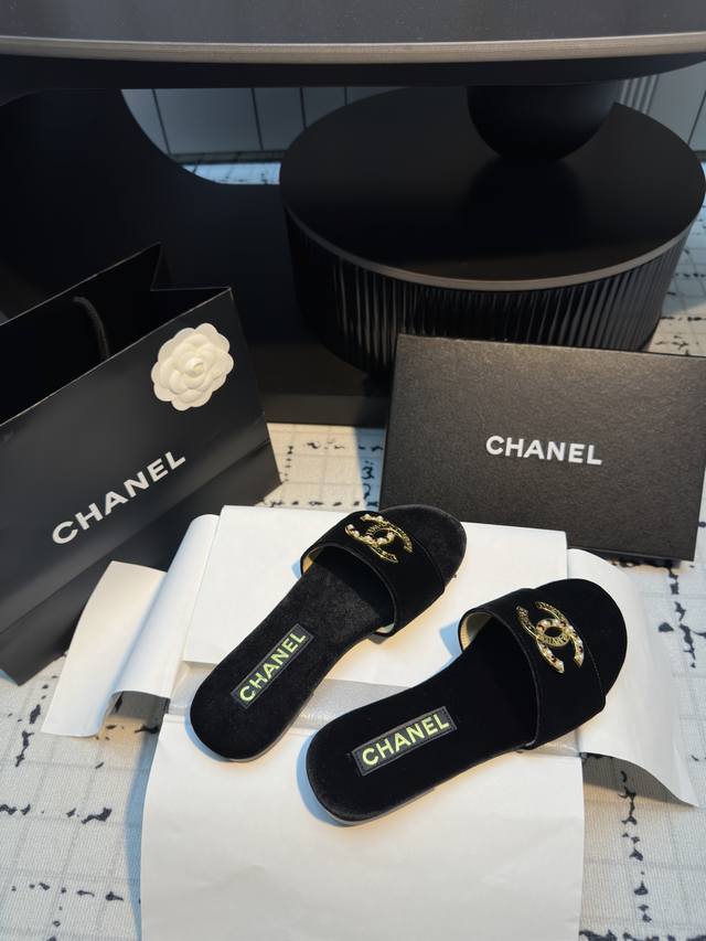 小香 25 2025 春夏新品 专柜经典款 小香一字带双C珠宝扣平底拖鞋系列上新 时尚圈的绝绝子 搭配将演绎着细致 极简 永不褪去的经典元素 展现与众不同的穿搭风格美到无话可说 夏季必入款 鞋面:原版高定制丝绒内里:进口混种羊皮里 大底:原版意大利真皮大底码数:35 41 40.41定做不退不换
