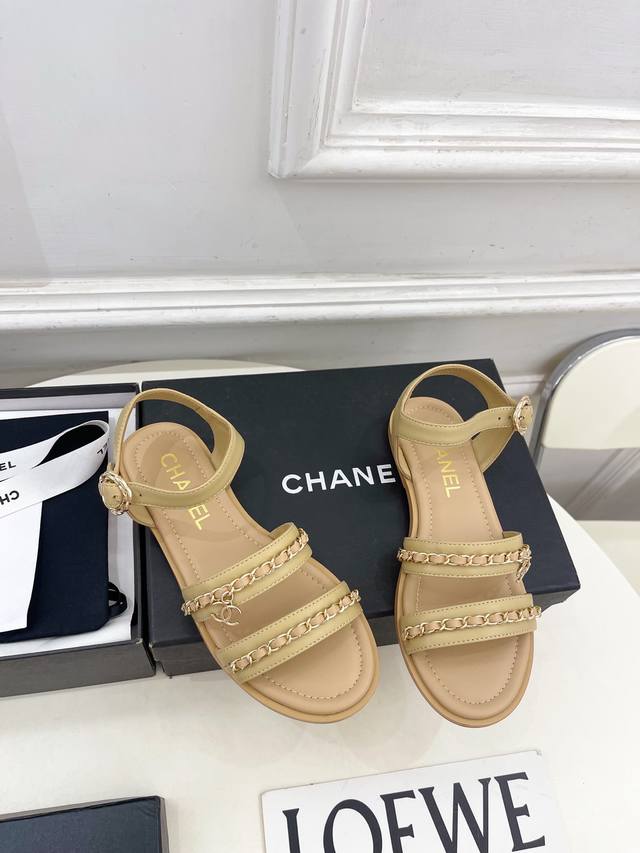 / 小香 25 2025 春夏新品 专柜经典款 小香双C扣链条平底凉鞋系列上新 Bs时尚圈的绝绝子 搭配将演绎着细致 极简 永不褪去的经典元素 展现与众不同的穿搭风
