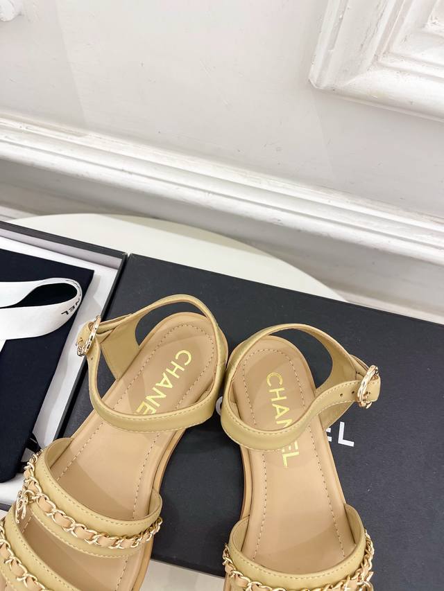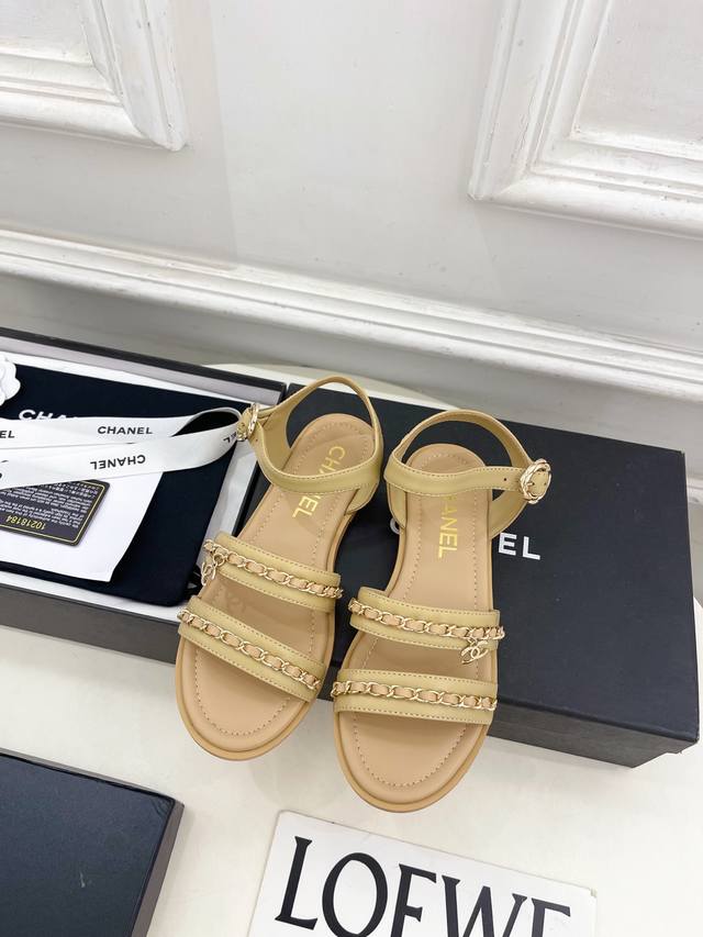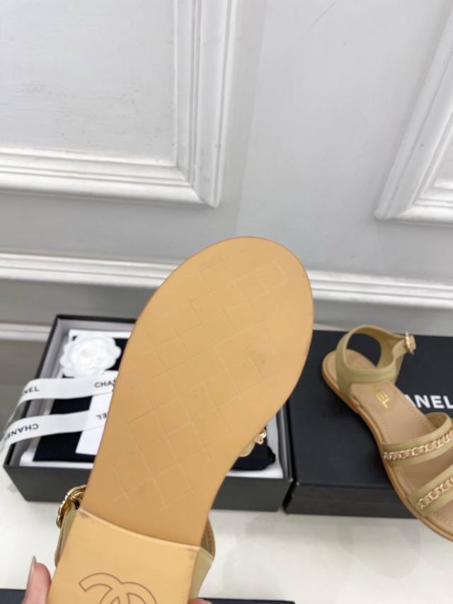 小香 25 DDD 2025 春夏新品 专柜经典款 小香双C扣链条平底凉鞋系列上新 DDD Bs时尚圈的绝绝子 搭配将演绎着细致 极简 永不褪去的经典元素 展现与众不同的穿搭风格美到无话可说 夏季必入款 DDD T DDD 鞋面:原版高定制小羊皮 DDD 内里:进口混种羊皮里 DDD 大底:原版开模定制防滑大底 DDD 鞋码: 35-39 40.41定制不退换 DDD 出厂价pp: DDD