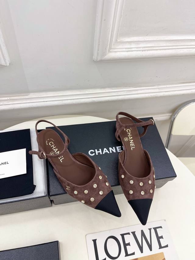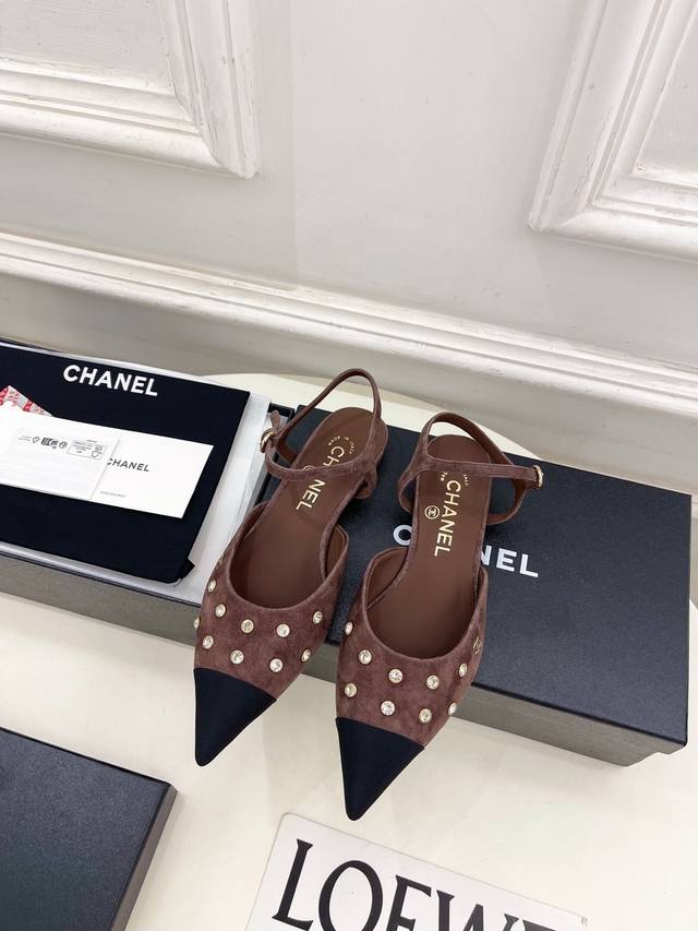 小香 25 2025 秋冬新品 专柜经典走秀款 小香双C水钻尖头平底凉鞋 系列上新 Bs时尚圈的绝绝子 搭配将演绎着细致 极简 永不褪去的经典元素 展现与众不同