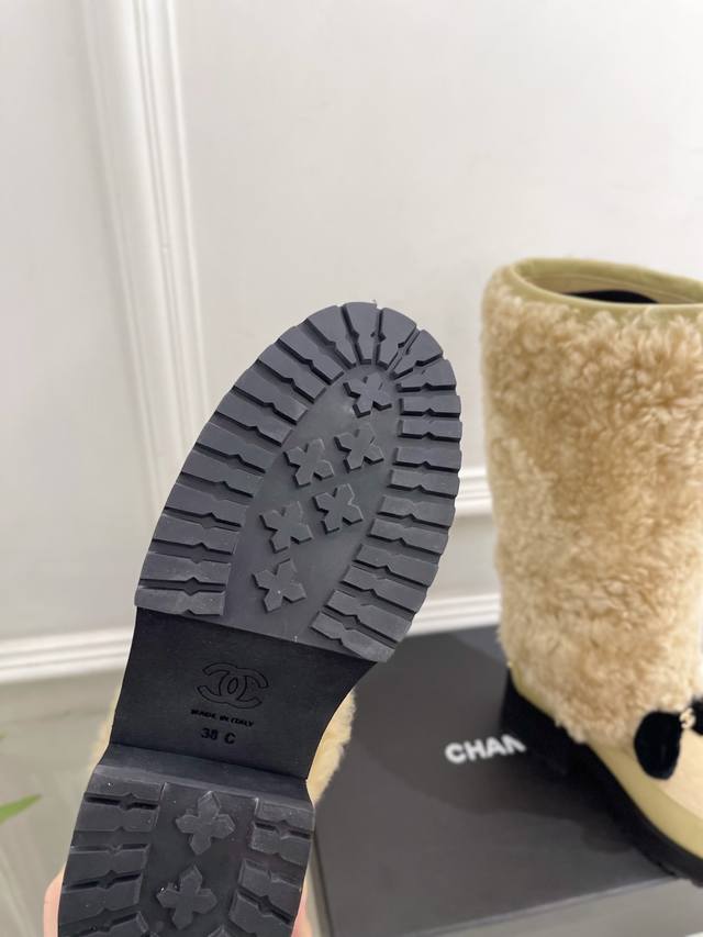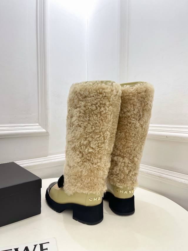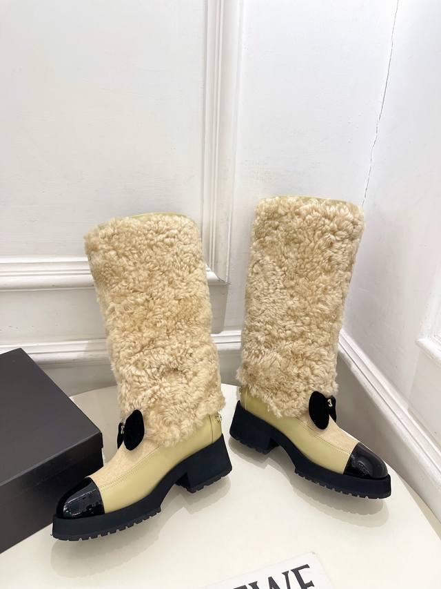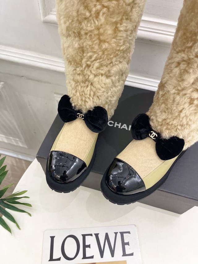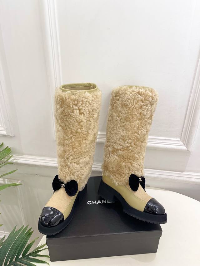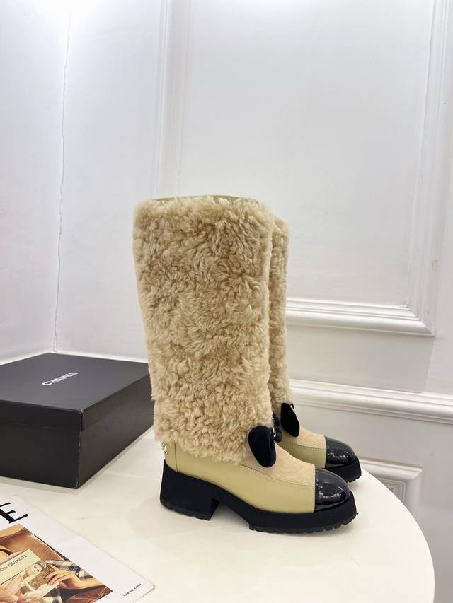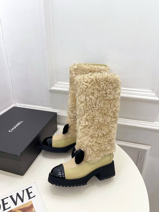 小香 25 2025 秋冬新品 专柜经典走秀款 小香双C蝴蝶结拼色厚底羊毛长靴 系列上新 Bs时尚圈的绝绝子 搭配将演绎着细致 极简 永不褪去的经典元素 展现与