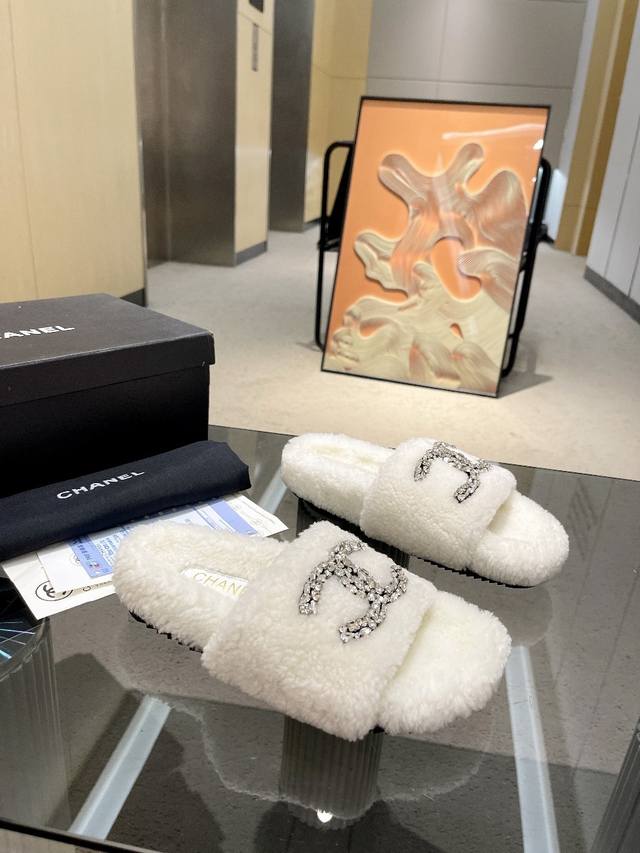 頂级品质纯皮毛一体直毛打造!超温暖的感觉,穿上仿佛踩在云朵上小香经典花扣装饰,精致高级!让这双毛拖身价陡增!手工点钻,鞋底是原版开模的Pvc发泡防滑大底,非常好穿不打滑,而且鞋底有一定厚度,舒适度极佳!码数35-41 41订做不退换