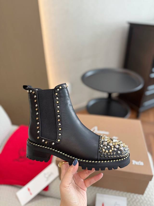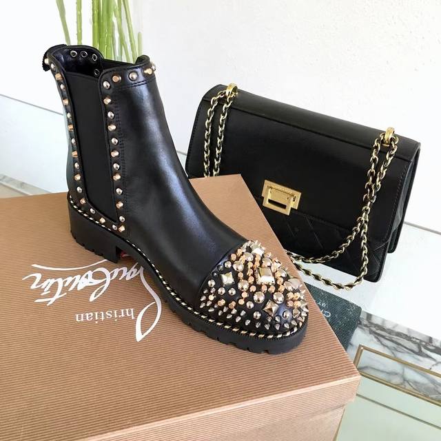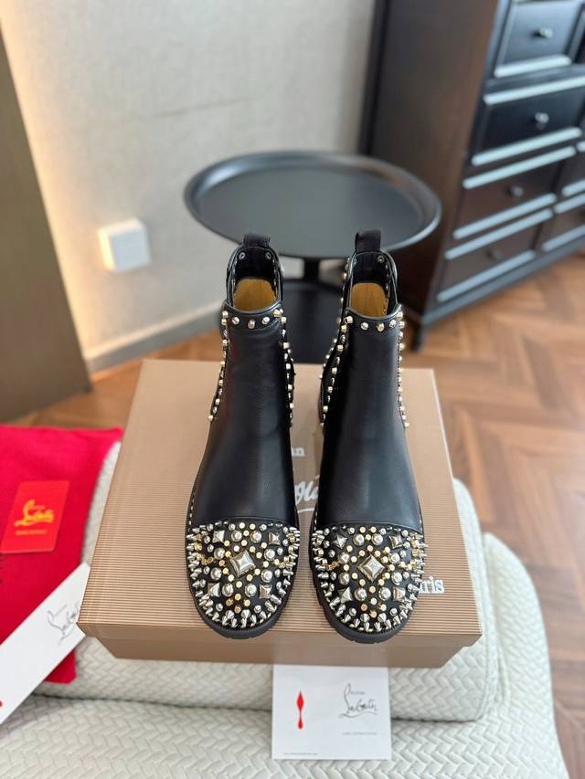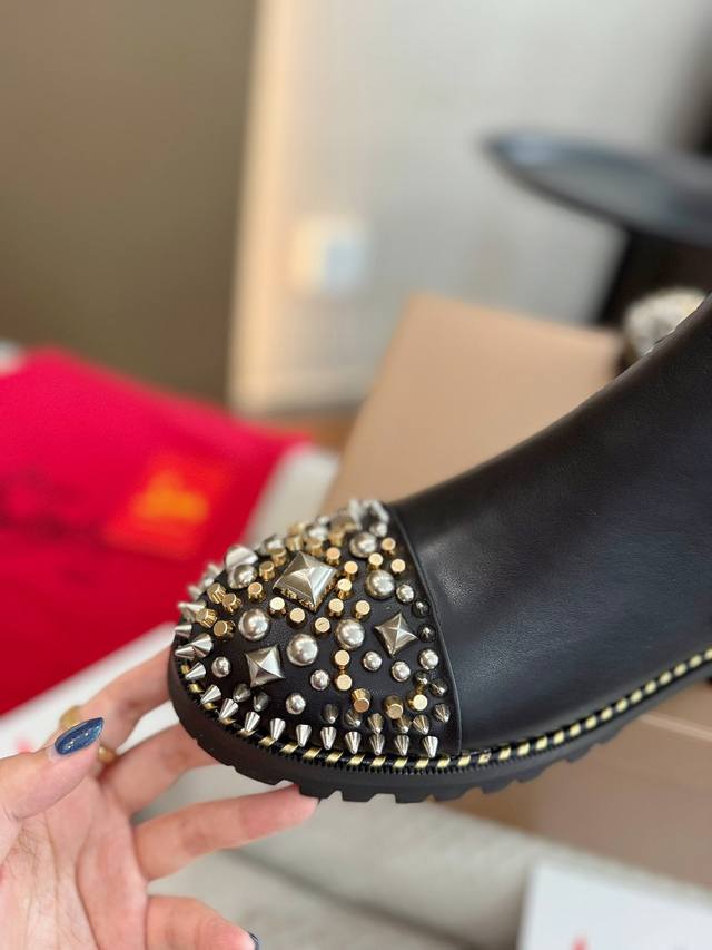 工厂P价 上图必卖. Christian Louboutin秋冬款 原版开发高品质专柜新品、原版套宣饱满帅气靴形、鞋头铆钉设计、配加顶级工艺双层黑红配色组合大底、色度光泽质感完全媲美正品、种种工艺加上明星上脚 名人街拍都是爆卖点、也是本厂强烈推荐的理由! 材质:面料进口小牛皮配电镀五金铆钉!内里垫脚全牛皮!顶级工艺不是一般工厂P可做到的组合双色橡胶大底、配置专柜原版包装 Szie: 35-40 41可订做