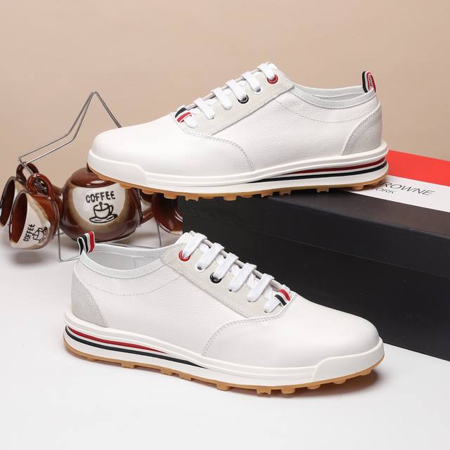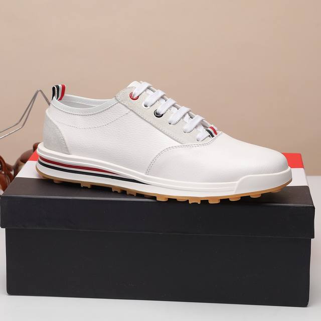 工厂p价 高端原版1:1羊皮里 Thom Browne 汤姆 布朗 New York 汤姆再上爆款!这个邪魅酷感的新锐品牌 让我们在这个夏天有了放松 时髦 个性的新选择 .鞋面采用原版进口牛皮内里羊皮 鞋底采用原版鞋底制作 织带红白蓝3道杠杠点亮了品牌的元素 码数:38-44 DDD