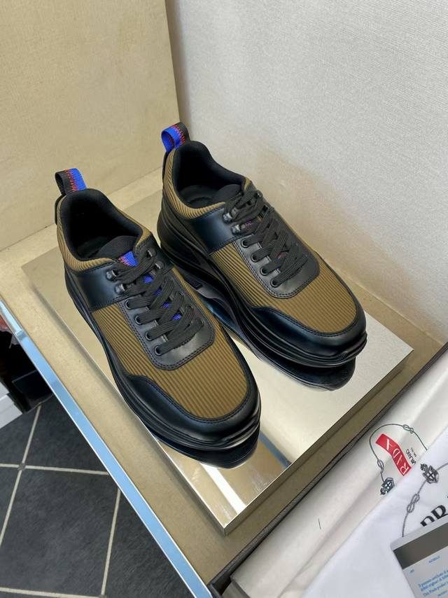 工厂p价 38-45 pr新款男士真皮运动鞋,市面最高版本 、欢迎任意对比!原版皮料质感极佳,超上档次!意大利进口胎羊网内里,可拆式垫!奢华用料、精细做工,极力推荐入手! DDD