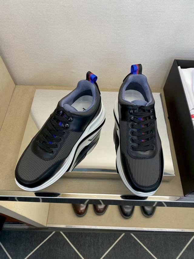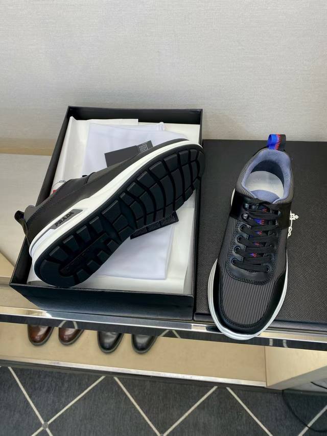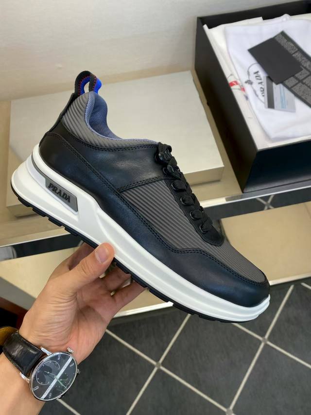 工厂p价 38-45 prada 新款男士真皮运动鞋,市面最高版本 、欢迎任意对比!原版皮料质感极佳,超上档次!意大利进口胎羊网内里,可拆式垫!奢华用料、精细做