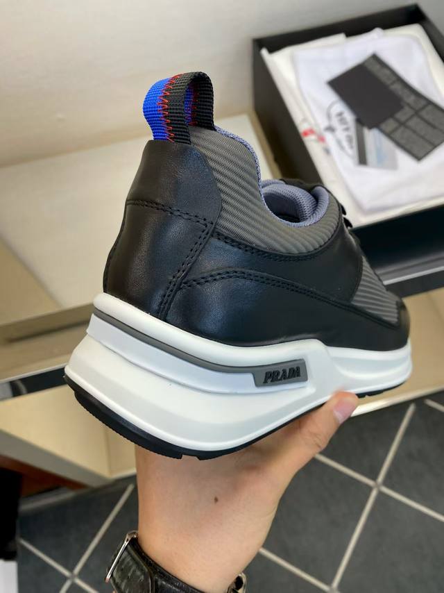 / 工厂p价 38-45 prada 新款男士真皮运动鞋,市面最高版本 、欢迎任意对比!原版皮料质感极佳,超上档次!意大利进口胎羊网内里,可拆式垫!奢华用料、精细做