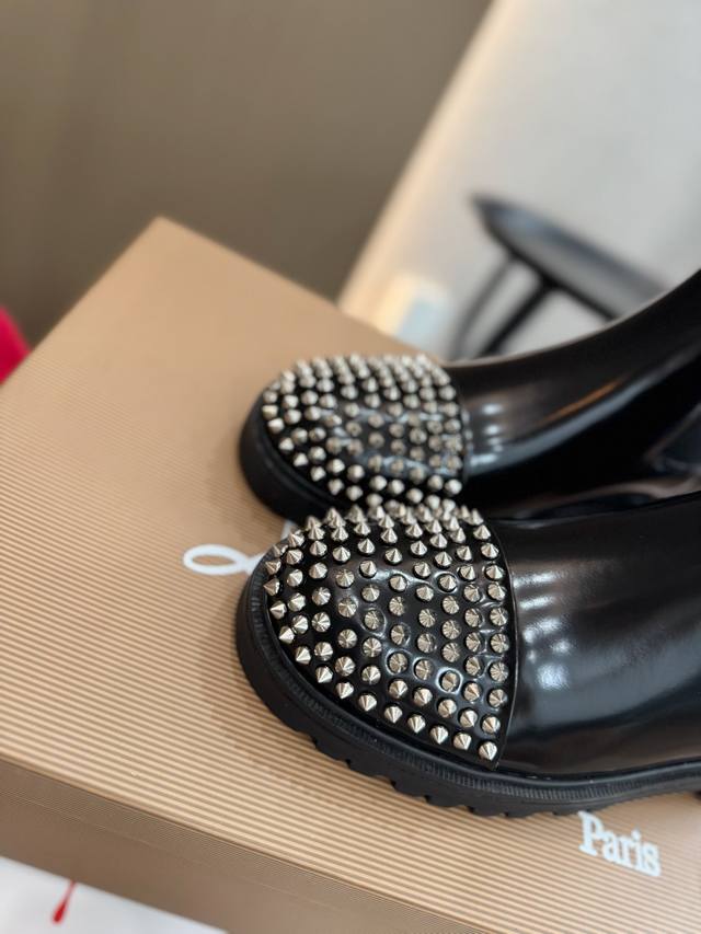 工厂p价 Christian Louboutin秋冬新品爆款. 上图转发必卖. 原版开发高品质专柜新品、原版套宣饱满帅气靴形、鞋头铆钉设计、配加顶级工艺双层黑红配色组合大底、色度光泽质感完全媲美正品、种种工艺加上明星上脚 名人街拍都是爆卖点、也是本厂强烈推荐的理由! 材质:进口开边珠牛皮面配电镀五金铆钉!内里垫脚全牛皮!顶级工艺不是一般工厂p可做到的组合双色橡胶大底、配置专柜原版包装 Szie: 35-40 41可订做 DDD