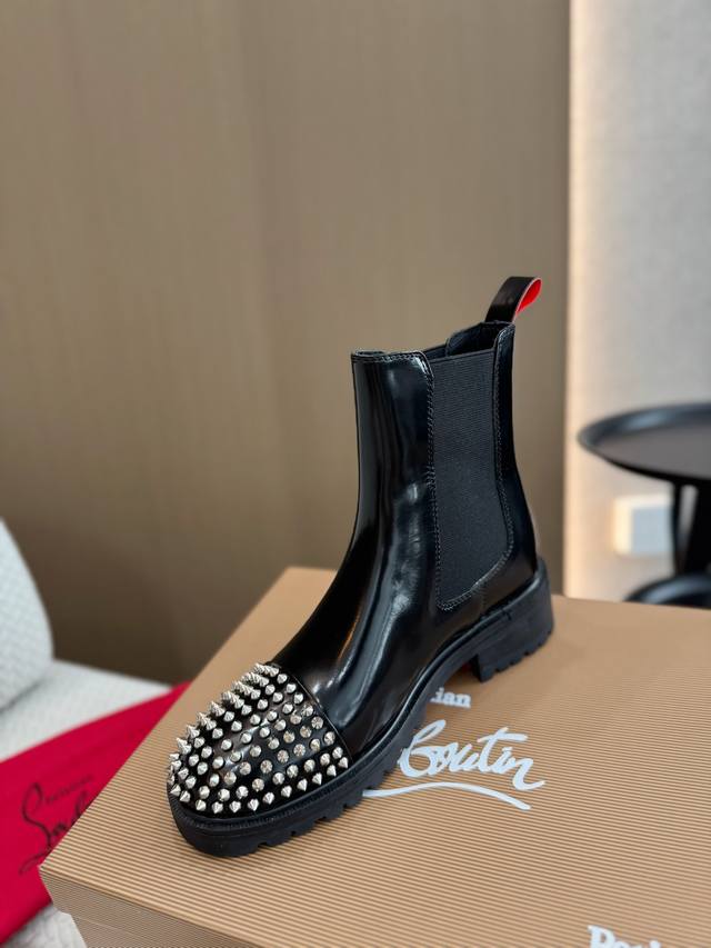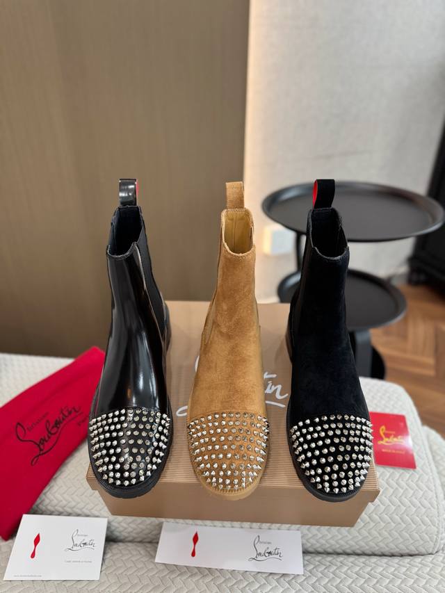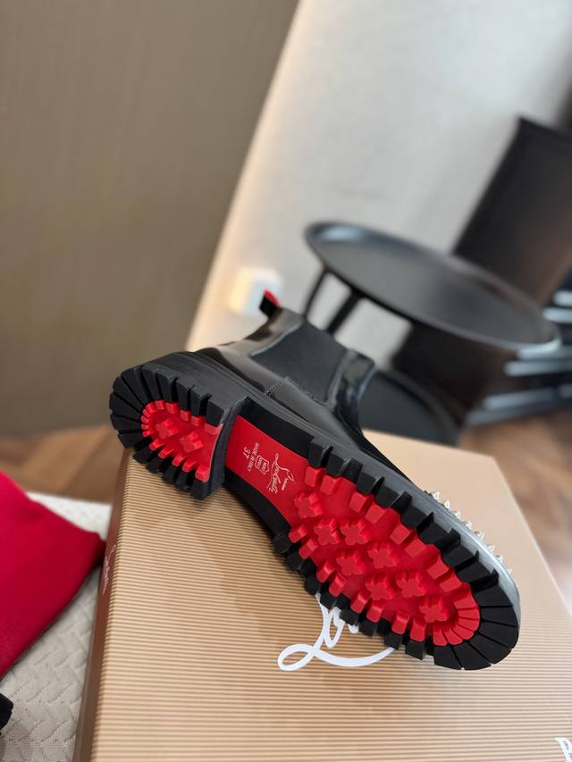 工厂p价 Christian Louboutin秋冬新品爆款. 上图转发必卖. 原版开发高品质专柜新品、原版套宣饱满帅气靴形、鞋头铆钉设计、配加顶级工艺双层黑红
