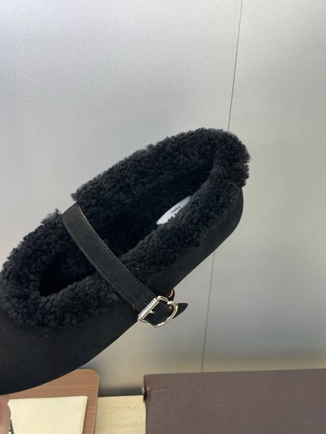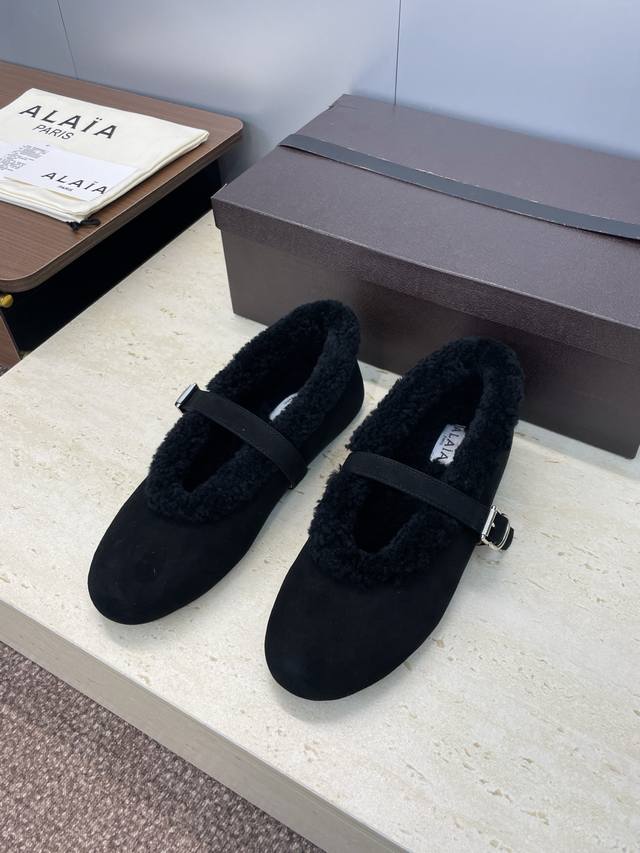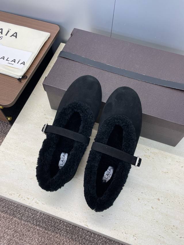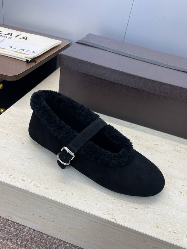 工厂p价p:普通盒 原版皮盒 DDD 阿莱亚2025秋冬新款羊羔毛玛丽珍芭蕾舞女鞋 Alaia明星同款平底圆头五金铆钉皮带扣拼色懒人乐福单鞋 DDD 材质:鞋面进口羊猄皮+羊羔毛内里+ 原版开模大底 DDD Size:34-42 34、40、41、42、定制不退换 DDD