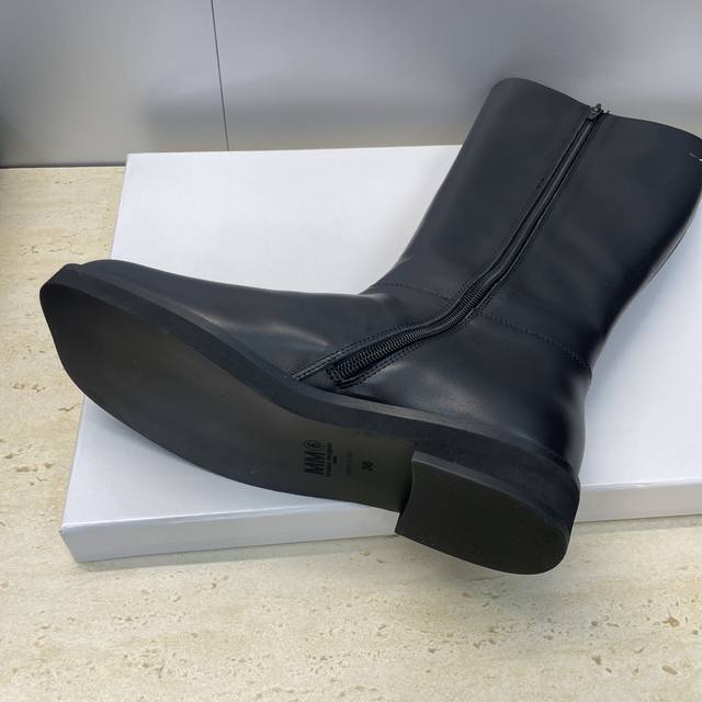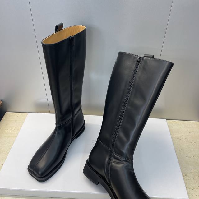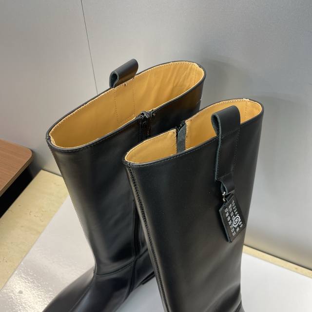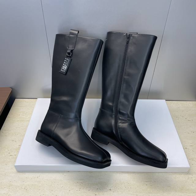 工厂p价p牛皮面p 牛猄面p510 Ddd Maison Margiela 马吉拉 2025秋冬新款一脚蹬高筒及膝女长靴 Mm6字母Logo低跟方头机车骑士靴 Ddd 材质:鞋面进口小牛皮 进口牛猄皮+水染牛皮内里+原版开模大底 Ddd 跟高:2.5Cm Ddd Size : 35-40 40 定制不退换 DDD